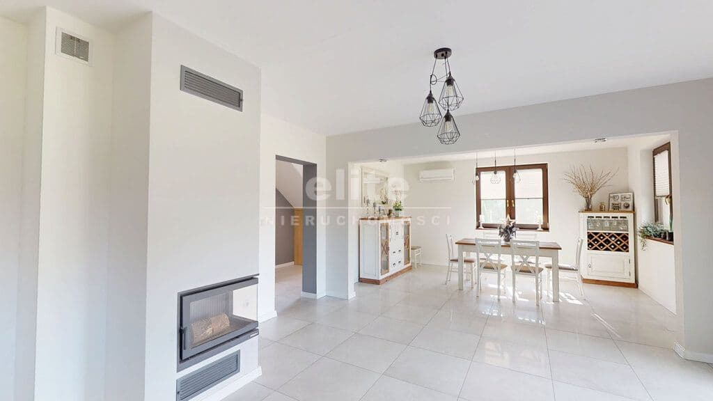 Standard i materiały: Dom został wzniesiony w technologii tradycyjnej z dbałością o detale. Solidne, monolityczne stropy żelbetowe oraz dach o konstrukcji drewnianej, pokryty wysokiej jakości dachówką ceramiczną. Budynek jest doskonale zaizolowany termicznie (styropian na ścianach zewnętrznych, polistyren ekstrudowany na fundamentach oraz wełna mineralna na poddaszu), co przekłada się na niskie koszty utrzymania. Na dachu zainstalowano panele fotowoltaiczne, co stanowi dodatkowy atut ekologiczny i ekonomiczny.
