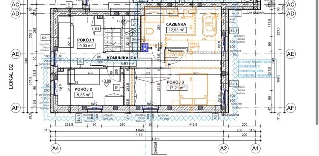 Piętro (lokal 02 – wersja z trzema pokojami):