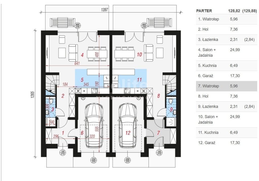 Na powierzchnię użytkową 127m2 ( całkowita pow. 134,79m2 ) składają się :