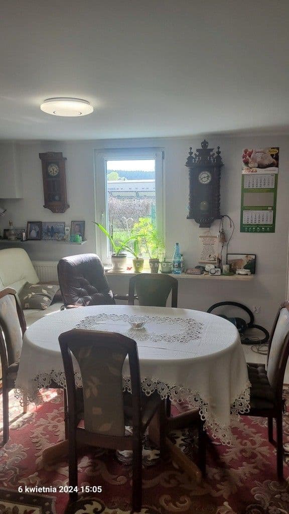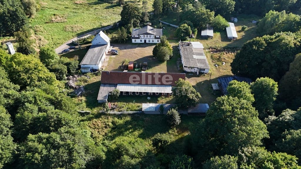 Na działce o pow. 6.44 ha jest dom mieszkalny (po remoncie) o pow. 106 m2). Dom ma dwa mieszkania. parter, kuchnia, pokój, łazienka oraz wejście do garażu (120 m2 ). Piętro z poddaszem (piętro: salon, kuchnia z jadalnią, WC, na poddaszu: sypialnia, łazienka i garderoba). Klimatyzacja, ogrzewanie gazowe.
