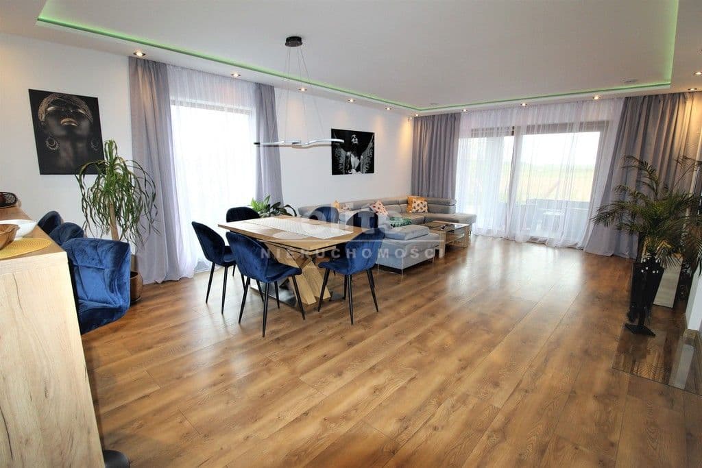 Niewątpliwym atutem domu jest system rekuperacji (system wentylacji mechanicznej), gdzie za pomocą telefonu podejrzymy wilgotność oraz jakość powietrza, jak również stacja uzdatniania wody, dzięki której mamy pewność, że woda nie posiada kamienia.