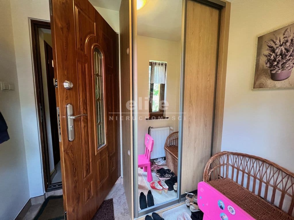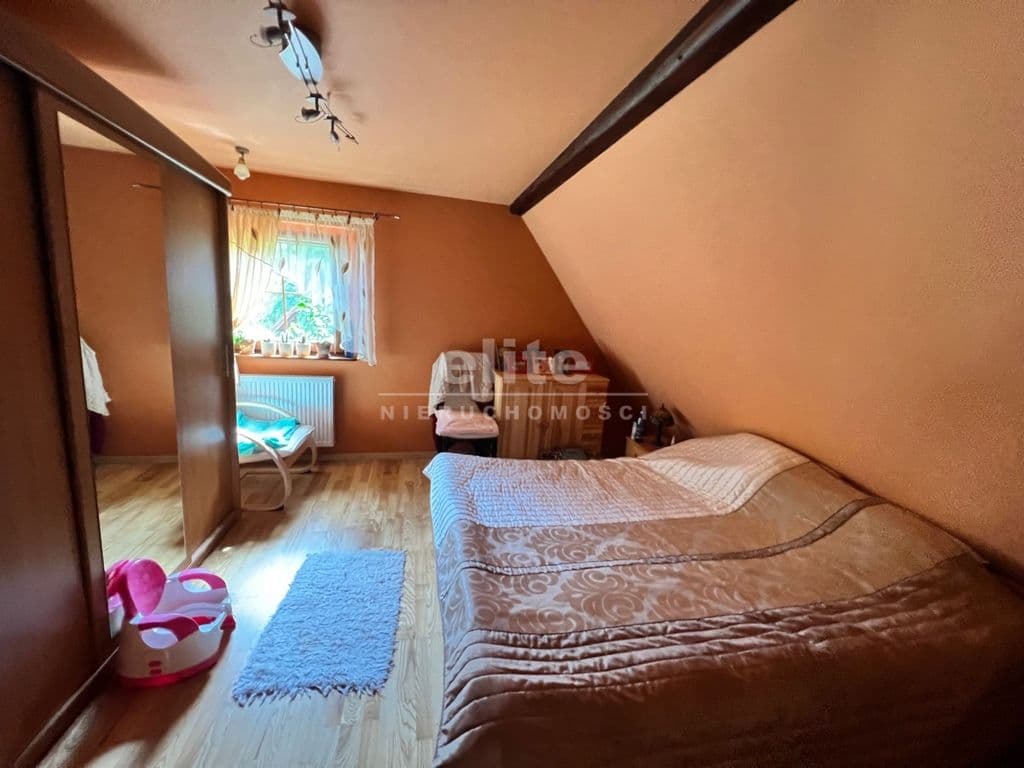 W skład domu wchodzą dwa poziomy na których znajdują się 4 pokoje, oddzielna kuchnia, łazienka, przedpokój i ganek.
