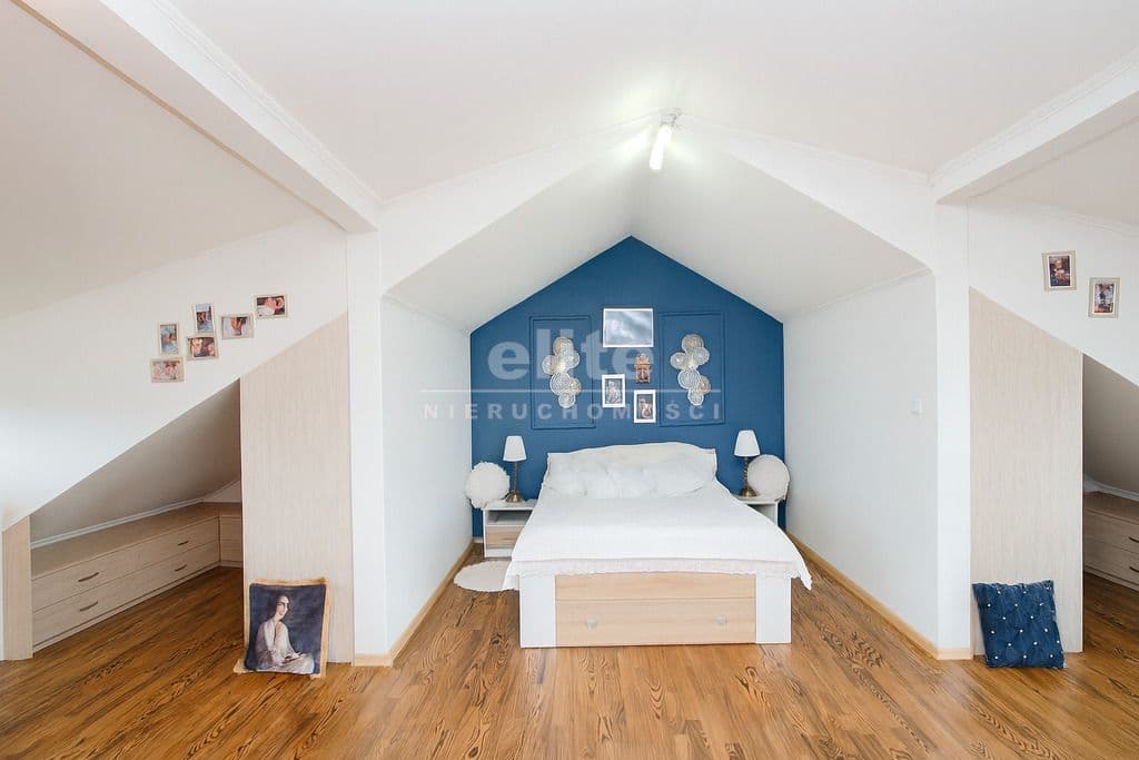 •W pokojach na podłodze panele, na poddaszu oryginalne deski z drewna naturalnego.