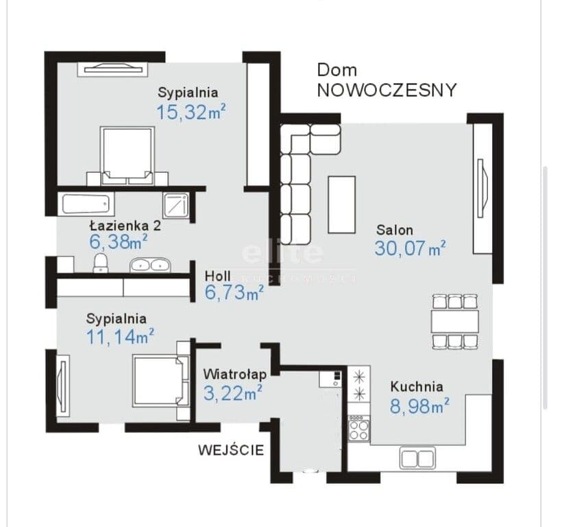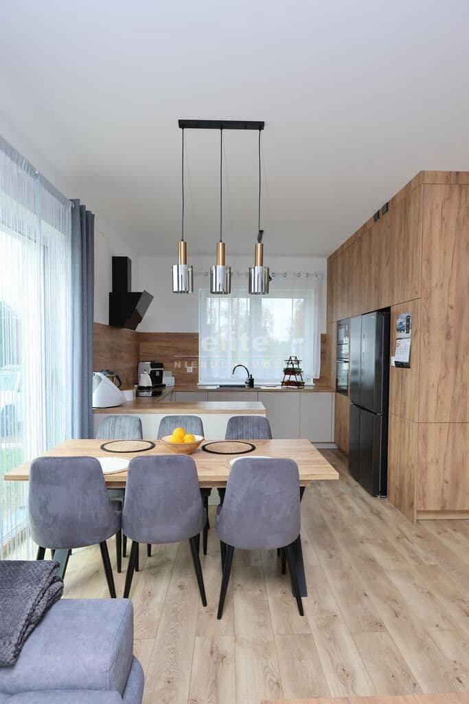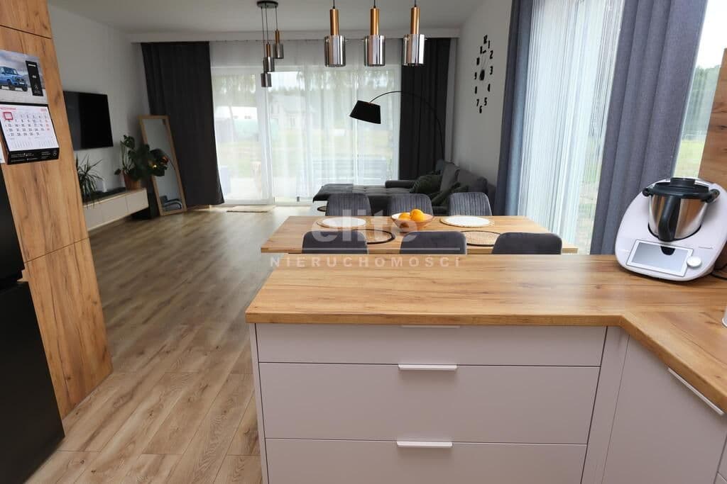 - salon (z wyjściem na taras) oraz otwarta kuchnia,