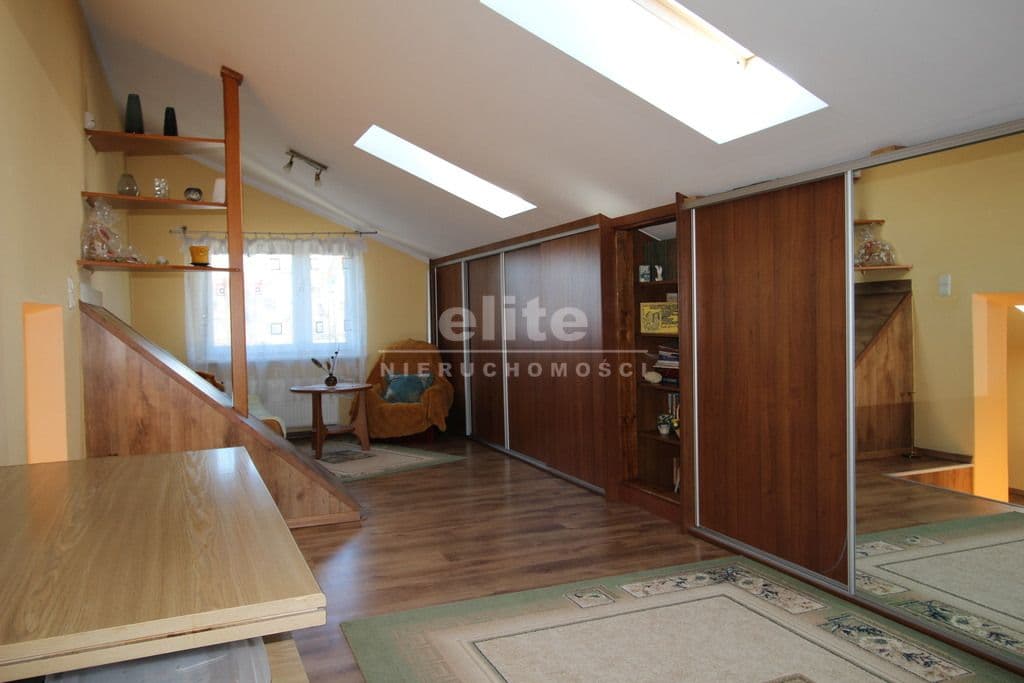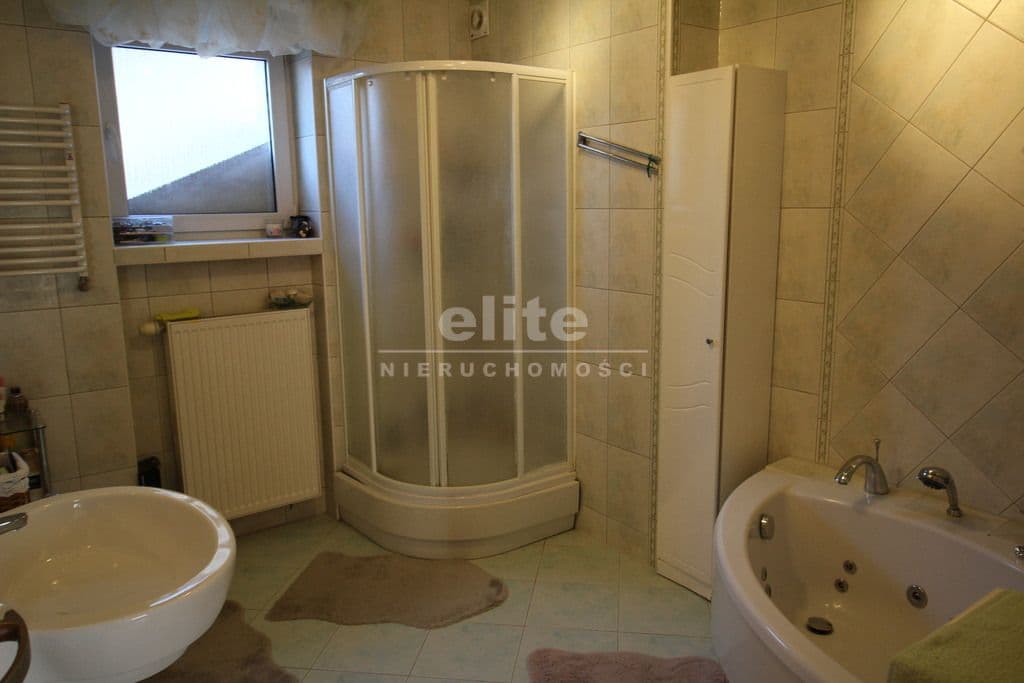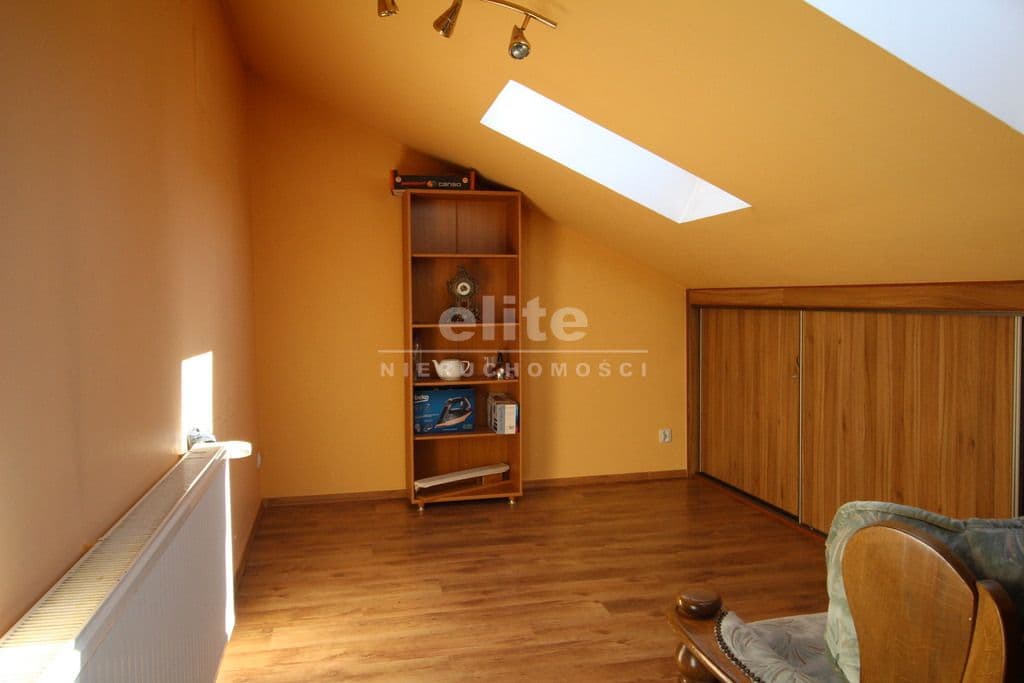 - Półpiętro: Znajduje się tu duża sypialnia główna z pojemną szafą i łóżkiem oraz dwa mniejsze pokoje. Duża łazienka z oknem to prawdziwe spa- wyposażona zarówno w prysznic, jak i wannę z hydromasażem.