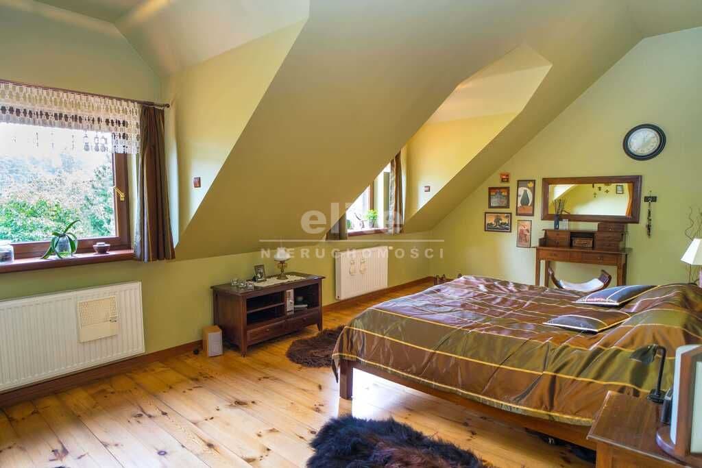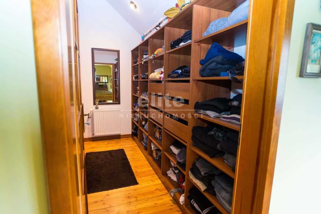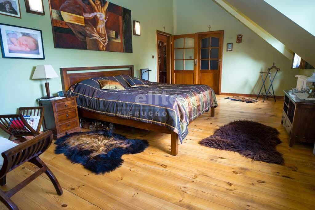 Poziom drugi : salonik telewizyjny z wyjściem na urokliwy balkonik, sypialnia z oddzielną garderobą, duża łazienka i mniejszy pokój z oknem połaciowym. Dodatkowe schody na antresolę - mini fitness.