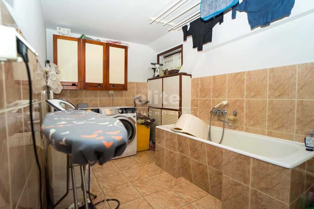 Piwnica pod częścią budynku (74 m2) składająca się z pomieszczenia gospodarczego, pralni, dodatkowej łazienki i garażu na jeden samochód.