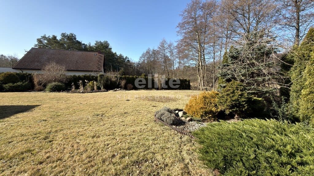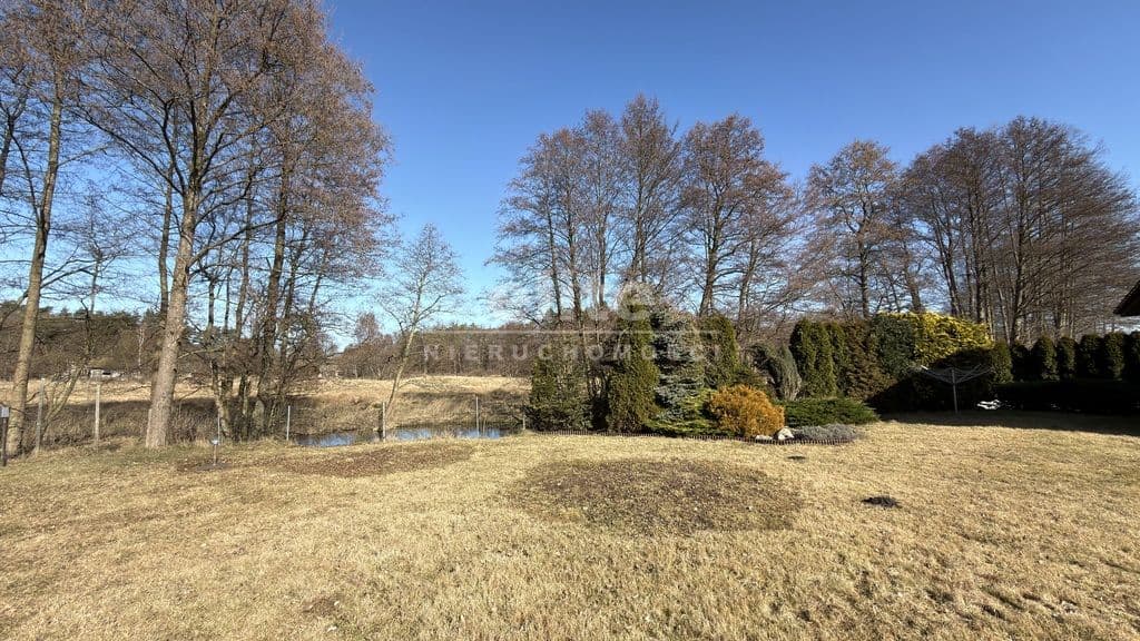 Dom położony jest na pięknie zagospodarowanej działce o powierzchni 1626 m2. Nieruchomość otacza dużo zieleni, a bezpośrednio na działce liczne nasadzenia, które tworzą przyjemną, prywatną przestrzeń do wypoczynku. W bezpośrednim sąsiedztwie działki znajduje się spokojna rzeczka, a za nią łąka i ściana lasu.