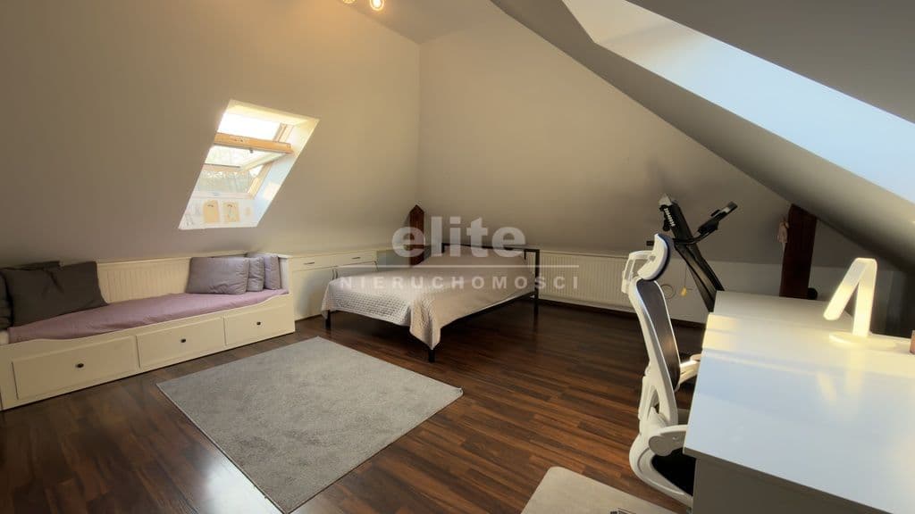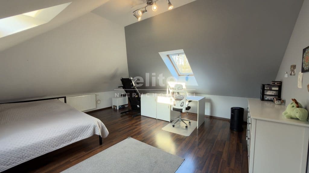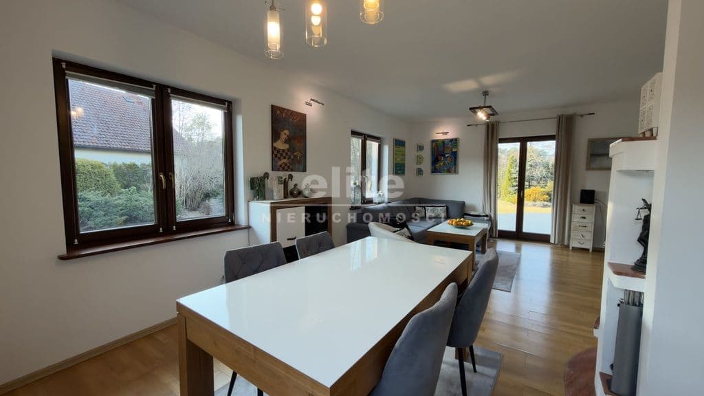 Budynek z 2009 roku, o powierzchni użytkowej 200 m2 (powierzchnia całkowita 400m2), usytuowany na działce o powierzchni 1626 m². Dom parterowy z poddaszem użytkowym i garażem dwustanowiskowym w bryle budynku.
