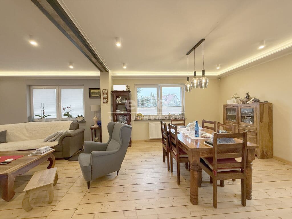 * przestronny salon połączony z dużą jadalnią oraz kuchnią