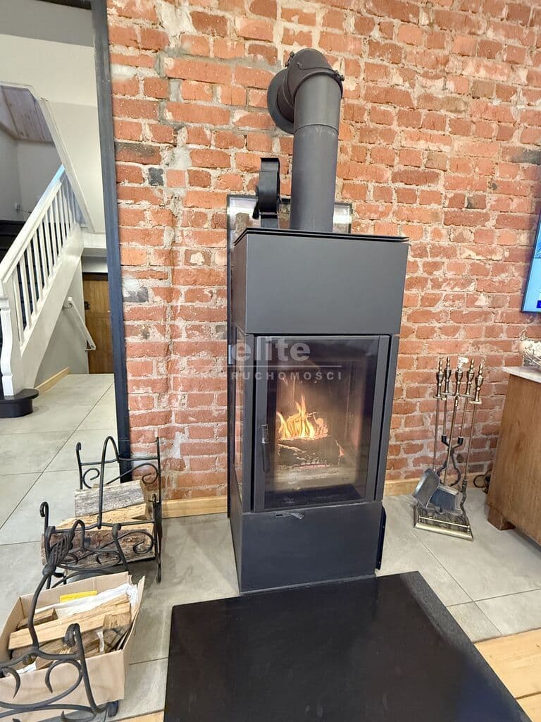 Ogrzewanie domu z pieca na olej opałowy BUDERUS. Dodatkowym źródłem ciepła jest kominek wolnostojący THOR.