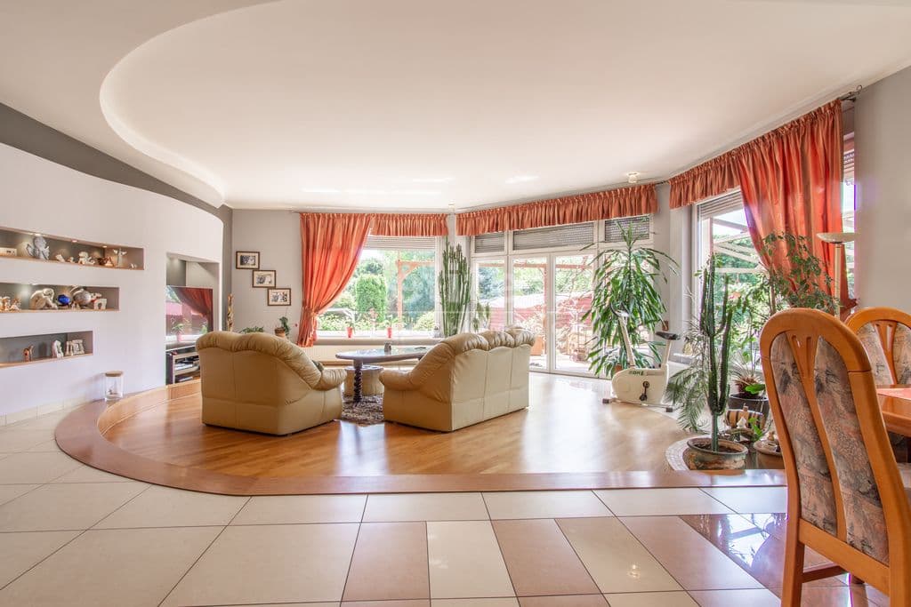 Wewnątrz domu został zaaranżowany samodzielny "mini apartament" z pokojem, sypialnią, oddzielną łazienką i wyjściem na taras, który z powodzeniem może pełnić funkcję mieszkania dla gości lub wielopokoleniowej rodziny, gwarantując intymność i świetne warunki do wypoczynku.