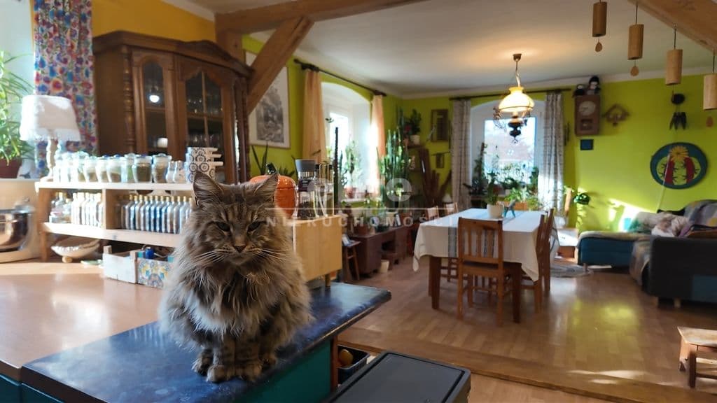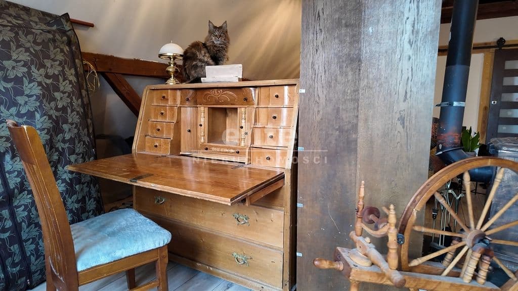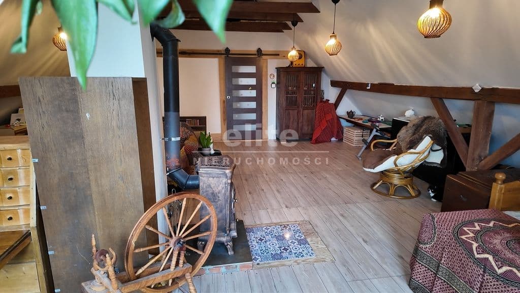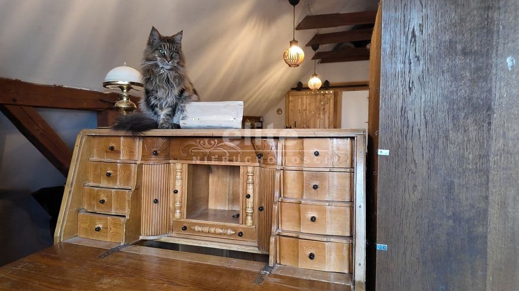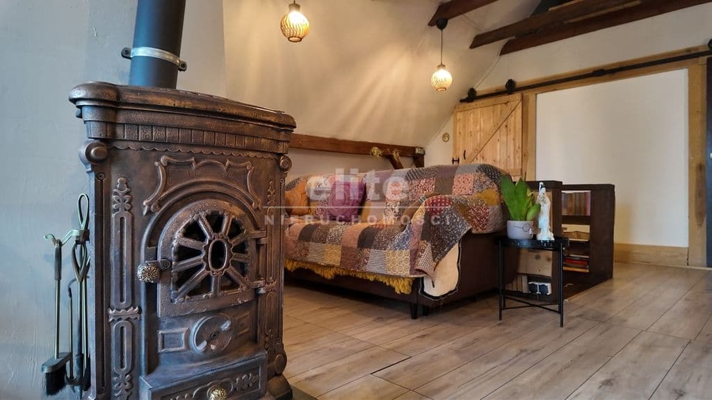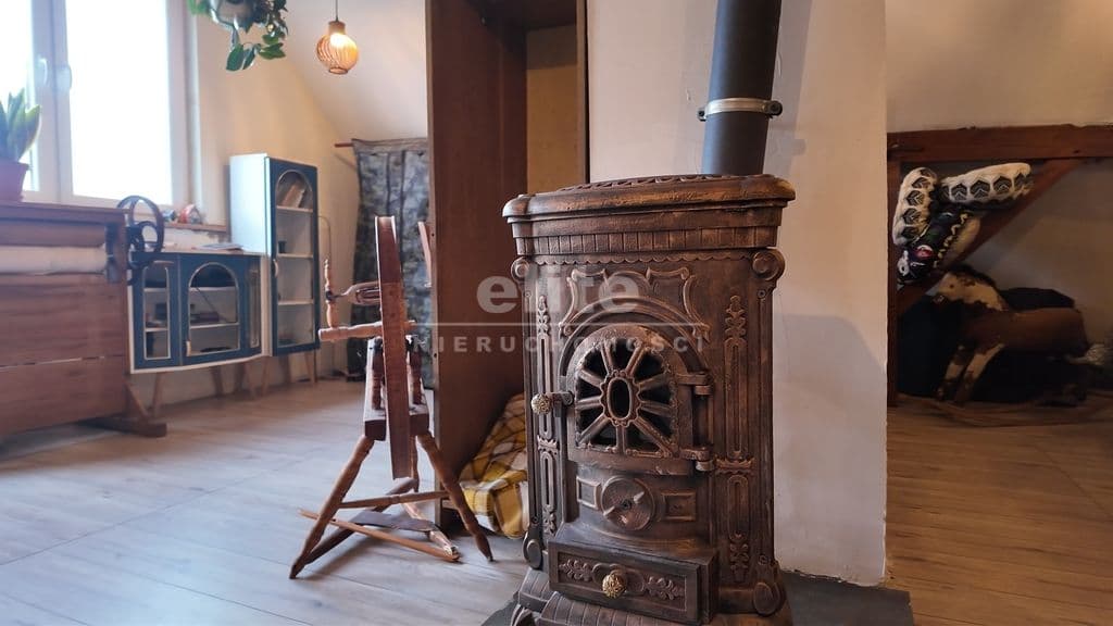 - Ogrzewanie: Pełna dowolność! Gaz miejski dla wygody, piec na paliwo stałe oraz klimatyczna koza, która nada pracowni niepowtarzalnego nastroju.