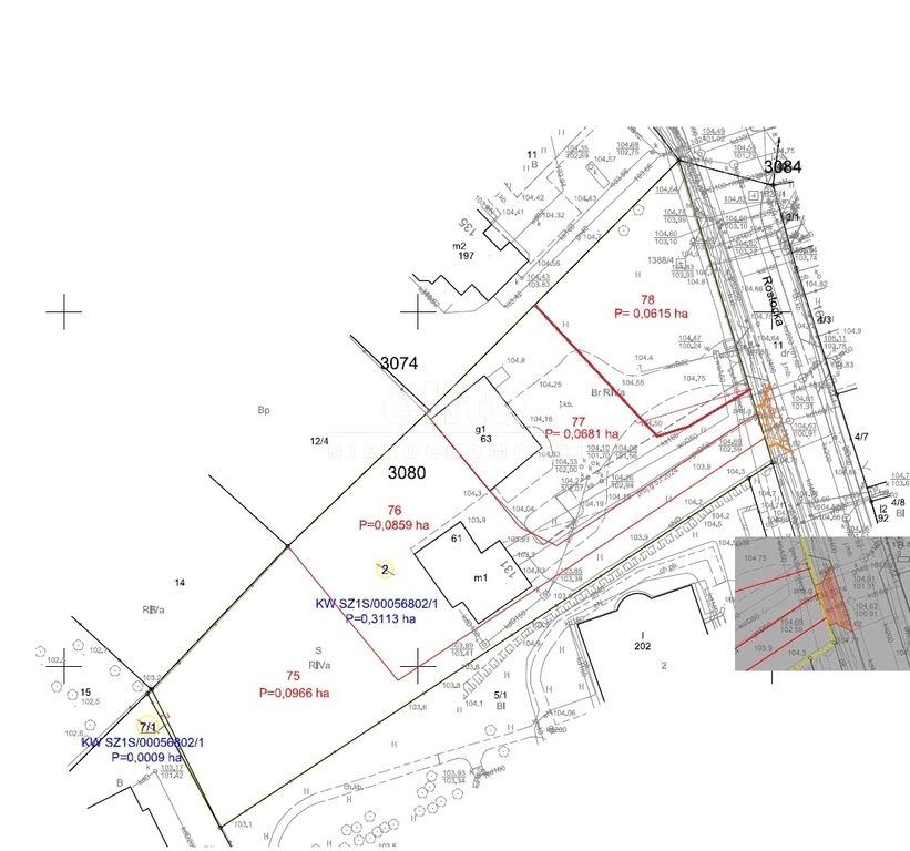 Umiejscowienie przedmiotowej nieruchomości ( domu na działce 859m2 ) na większej działce będącej w trakcie podziału ( zdjęcia z drona) oraz nowo wytyczony dojazd prowadzący do ulicy Rostockiej dokładnie pokazuje rysunek wstępnego podziału działki zamieszczony na zdjęciu nr 4.