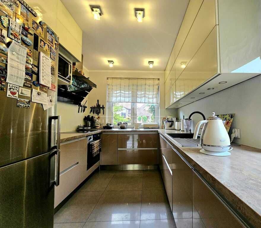 Nieruchomość doinwestowana i odświeżona. Ogrzewanie domu - gazowe (nowoczesnym piecem dwufunkcyjnym - wymienionym w 2022 roku) oraz kominkowe. Bardzo funkcjonalny układ pomieszczeń, uzyskany po zmodyfikowaniu pierwotnego projektu. Dom wykańczany materiałami wyłącznie wysokiej jakości. Po generalnym remoncie w 2022 roku, wymieniono wówczas m.in. podłogi, drzwi, umeblowanie, sprzęty, piec gazowy i wiele innych. Odmalowano również elewację oraz wykonano nowa podbitkę. Drzwi drewniane, antywłamaniowe, okna PCV również z roletami antywłamaniowymi oraz zainstalowanymi moskitierami. Dodatkowym atutem - aktywny system alarmowy z monitoringiem. Dom ekonomiczny w utrzymaniu, na dachu zainstalowana instalacja fotowoltaiczna (10kW). Wszystkie media miejskie. Poddasze do indywidualnego zaaranżowania. Duży garaż (24 m²) w bryle budynku (z bramą otwieraną na pilota) z dodatkową wiatą na kolejny pojazd oraz zainstalowaną stacją ładowania samochodów elektrycznych (EV). Spory taras (40 m²) z pięknie zaaranżowanym ogrodem, z wieloma nasadzeniami i domkiem narzędziowym (z zaaranżowanym miejscem na grilla oraz strefą do relaksu dla dzieci oraz dorosłych). Nieruchomość odseparowana metalowym ogrodzeniem, również z bramą otwieraną na pilota.