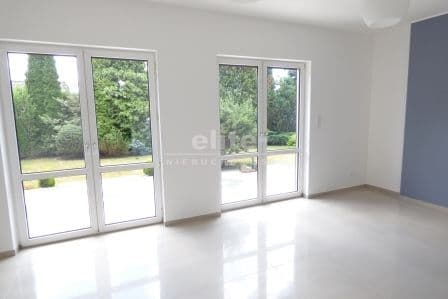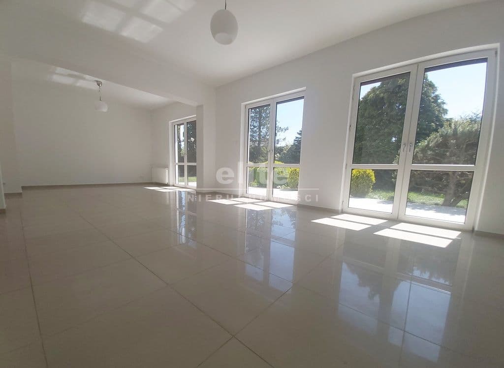 • parter - kuchnia, 2 łazienki, pomieszczenie na duży gabinet, duży salon z wyjściem na na taras ok. 40 m2 a dalej do ogrodu;