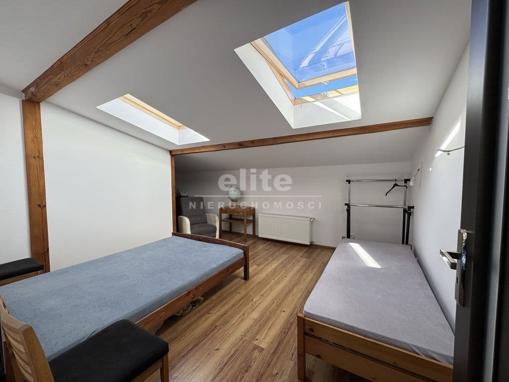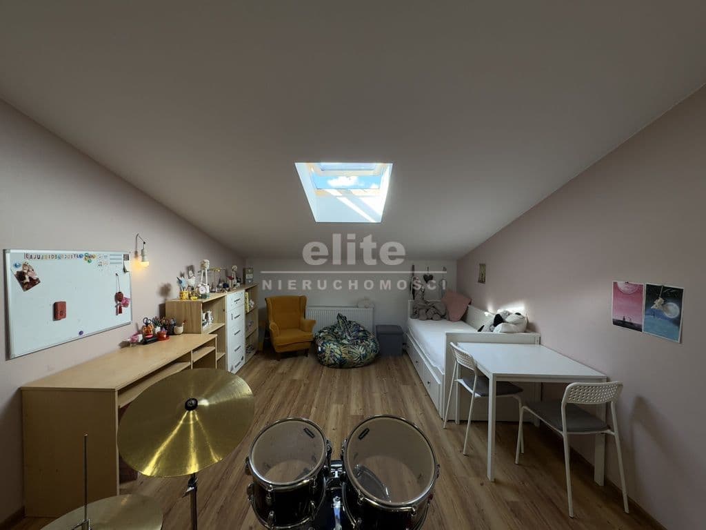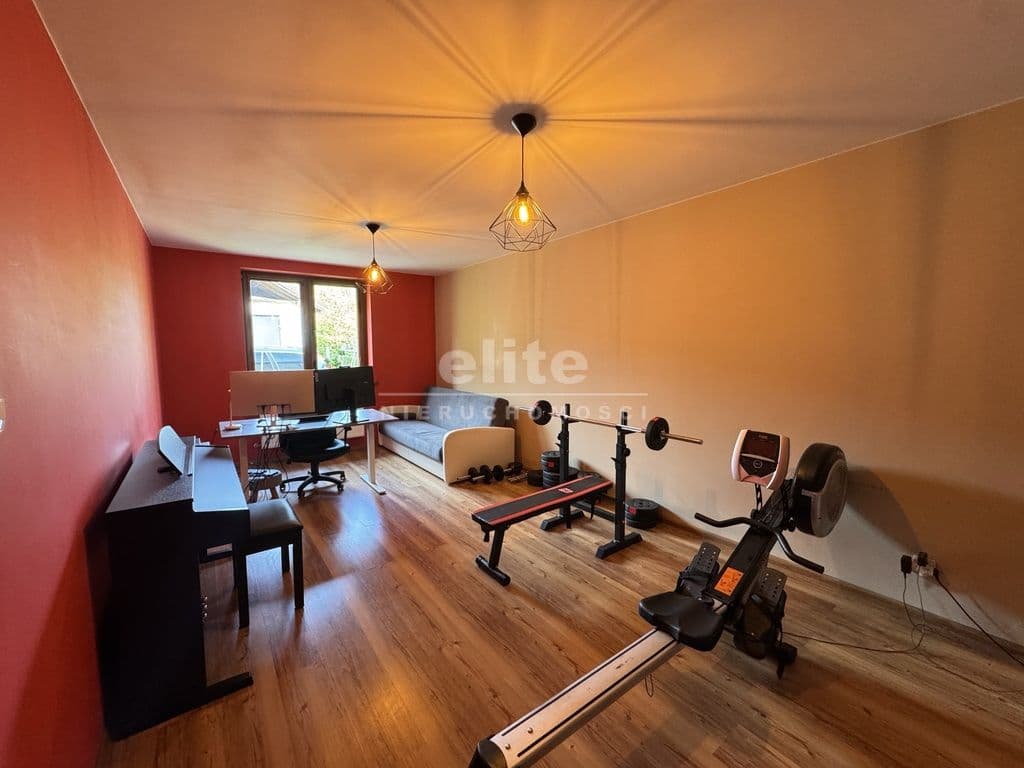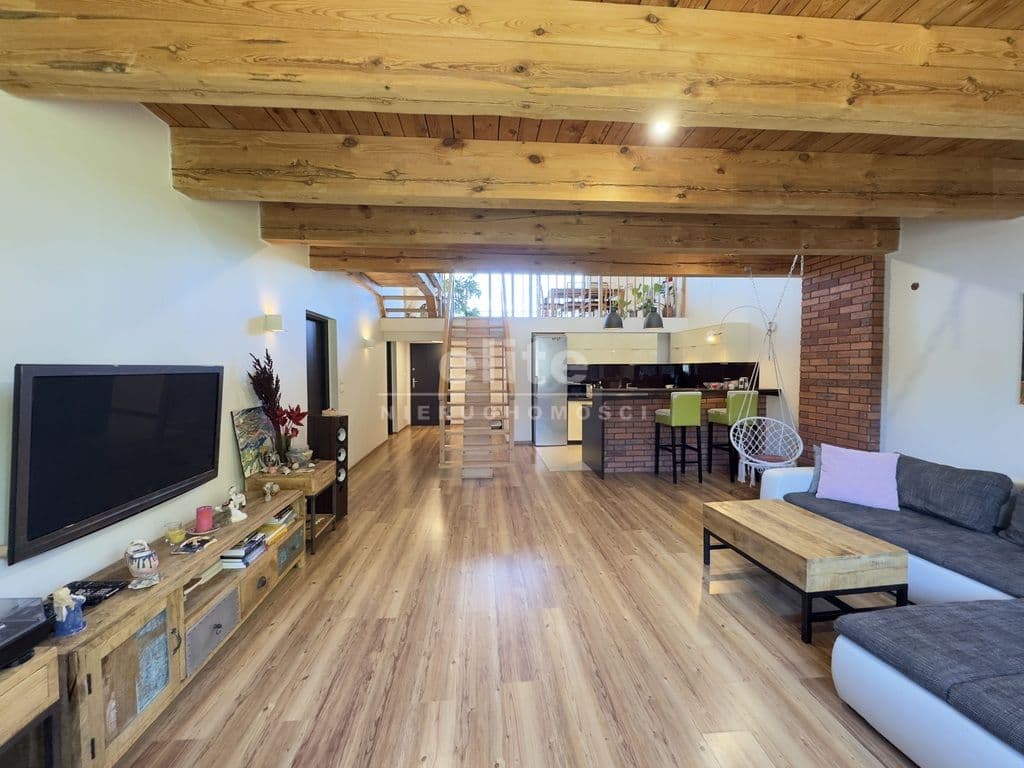 Na pierwszej kondygnacji znajduje się przestronny salon z otwartą kuchnią, pokój aktualnie wykorzystywany jako gabinet, duża i pojemna garderoba, łazienka z prysznice, umywalką i WC, kotłownia oraz wiatrołap. Drugą kondygnację stanowi antresola z wyjściem na taras z pięknym widokiem na otwartą przestrzeń (bez sąsiadów), 3 niezależne sypialnie oraz łazienka wyposażona w wannę, umywalkę i WC.