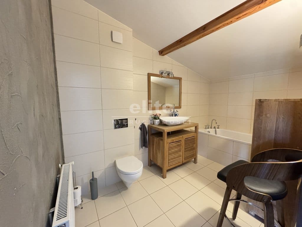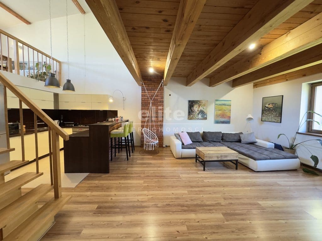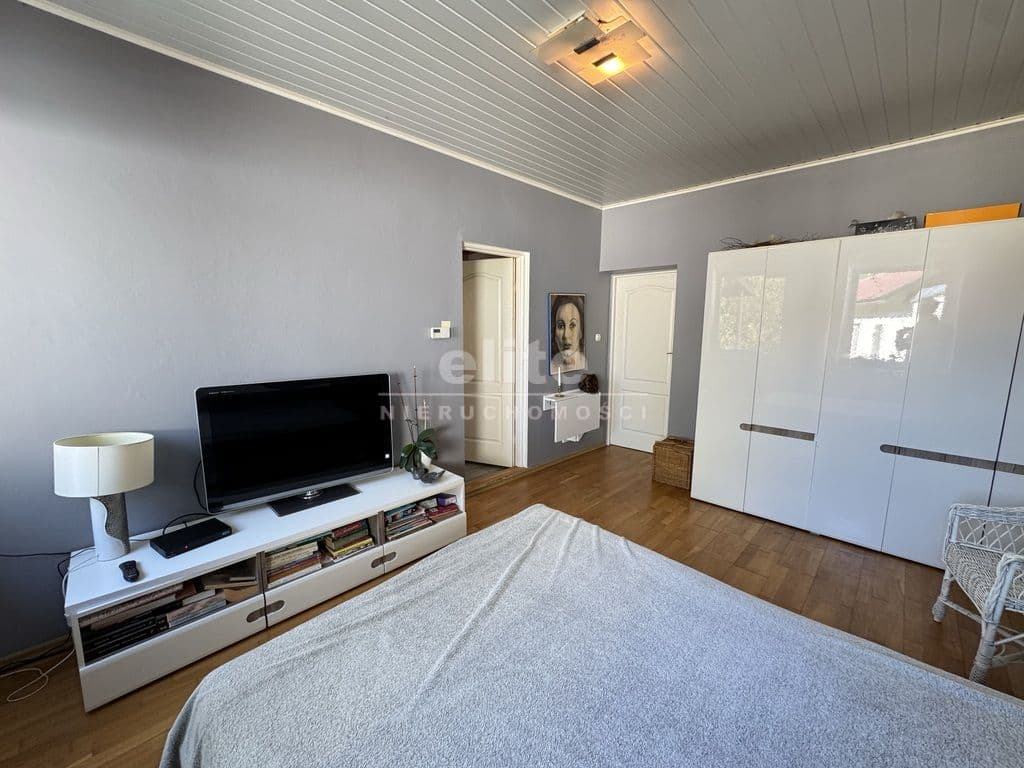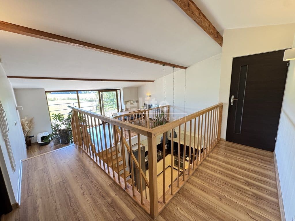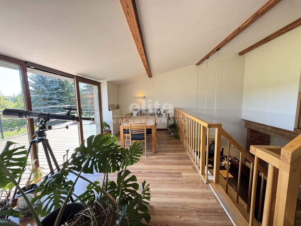 Na pierwszej kondygnacji znajduje się przestronny salon z otwartą kuchnią, pokój aktualnie wykorzystywany jako gabinet, duża i pojemna garderoba, łazienka z prysznice, umywalką i WC, kotłownia oraz wiatrołap. Drugą kondygnację stanowi antresola z wyjściem na taras z pięknym widokiem na otwartą przestrzeń (bez sąsiadów), 3 niezależne sypialnie oraz łazienka wyposażona w wannę, umywalkę i WC.
