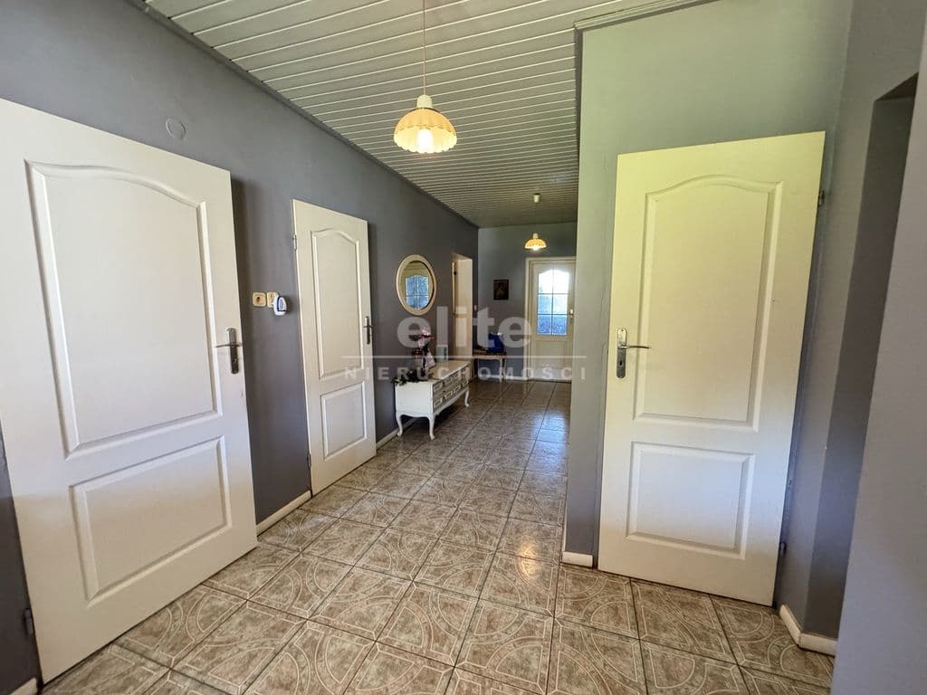 Powierzchnia użytkowa budynku wynosi 138,40m2 i składają się na nią 4 pokoje, gabinet, łazienka, oddzielne WC oraz kuchnia. Przed domem znajduje się klimatyczny ganek.