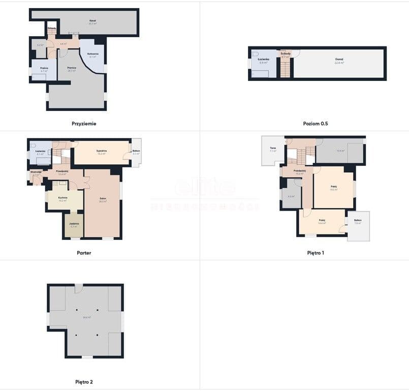 Przyziemie o powierzchni około 77 mkw., w skład którego wchodzą: