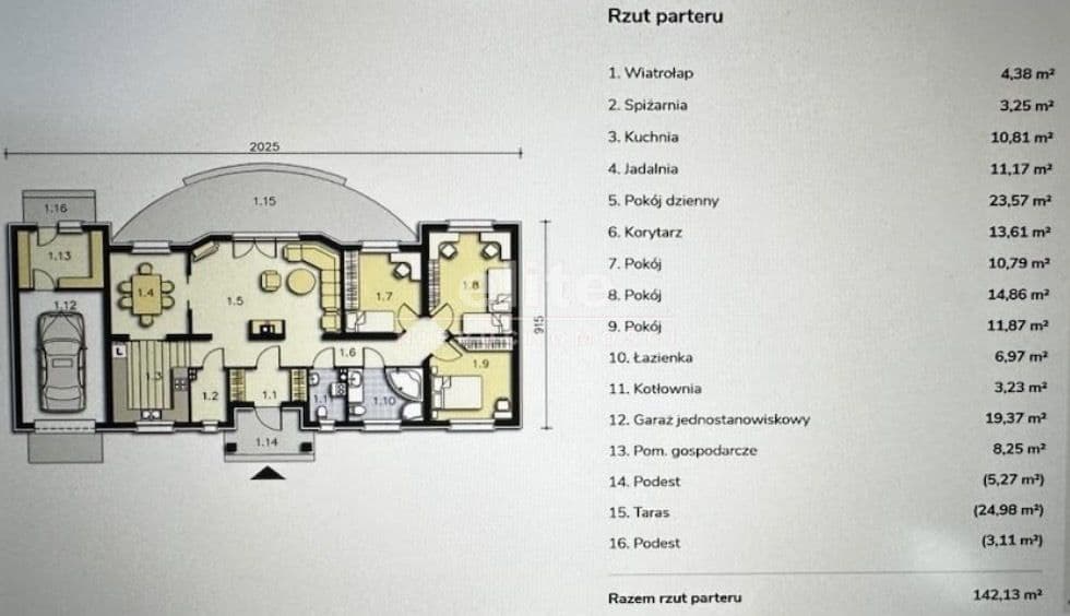 Powierzchnia całkowita (z garażem): 142,13 m²Powierzchnia użytkowa: 112 m²Rok budowy: 2008Powierzchnia działki: 1440 m²