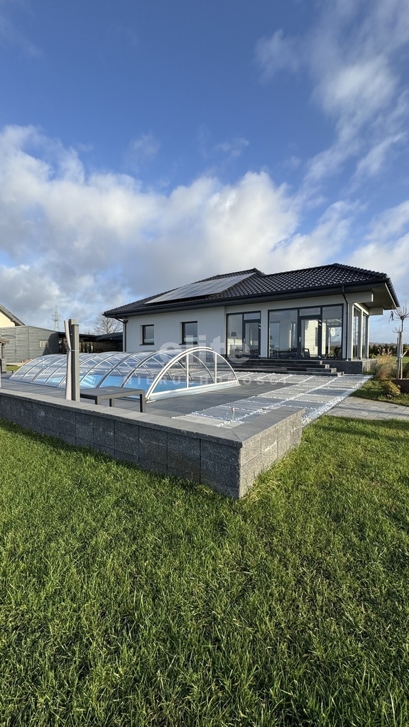 Na zewnątrz czekają na Ciebie dodatkowe udogodnienia: dwa garaże zewnętrzne (35 m² i 30 m²) oraz domek użytkowy (25 m²), oferujące mnóstwo miejsca na Twoje hobby i przechowywanie. A to nie wszystko! Prywatny, kryty basen zewnętrzny z całoroczną instalacją to gwarancja niezapomnianych chwil relaksu i zabawy dla całej rodziny.