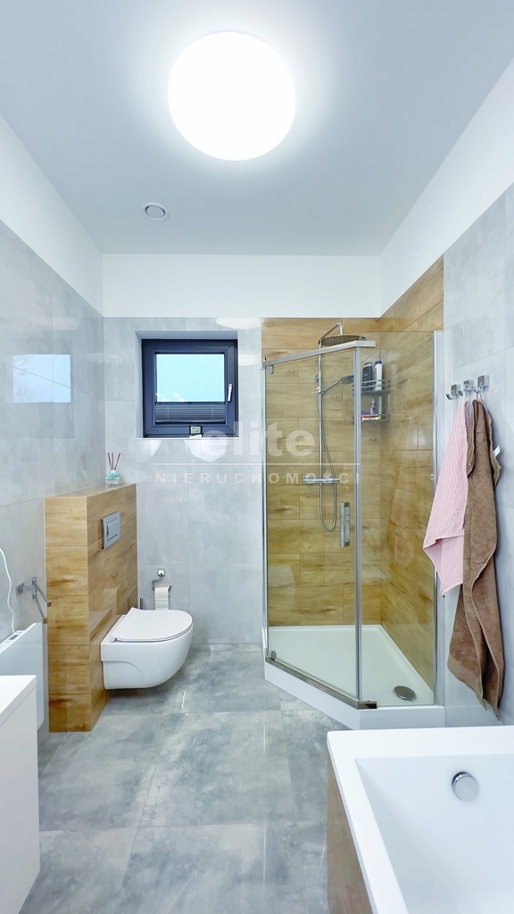 Komfort życia podnosi dwufunkcyjna klimatyzacja, a o Twoje bezpieczeństwo dba monitoring z funkcją noktowizyjną oraz elektryczne bramy na pilota. Solidny dach wielospadowy pokryty dachówką ceramiczną i doskonała izolacja to gwarancja ciepła i ciszy w Twoim domu. Wnętrza wykończono z dbałością o każdy detal, używając wysokiej jakości materiałów, takich jak gres i eleganckie panele.