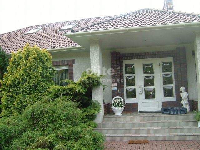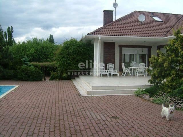 Dom posadowiony na dużej 2800m2 działce obsadzonej 3 tysiącami drzew i krzewów w tym 70 letnie cedry i świerki. Przy domu podgrzewany basen o wymiarach 6x 10 m i 1,5 m głebokości. W dalszej części ogrodu miejsce na grill,na podjeździe zadaszone 2 miejsca parkingowe.