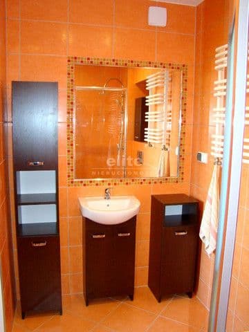 Mieszkanie na wysokim parterze składa się z dwóch pokoi (16 i 15 m2), jeden przechodni, widnej kuchni (11), jadalni (5) i łazienki z wc (5). Mieszkanie po remoncie. W pokojach na podłogach deski, ściany wygładzone i pomalowane. W kuchni na podłodze terakota, nowa zabudowa meblowa wraz ze sprzętem AGD. W łazience podgrzewane podłogi, kabina prysznicowa, wc, umywalka.