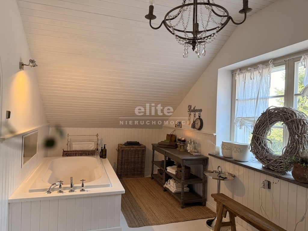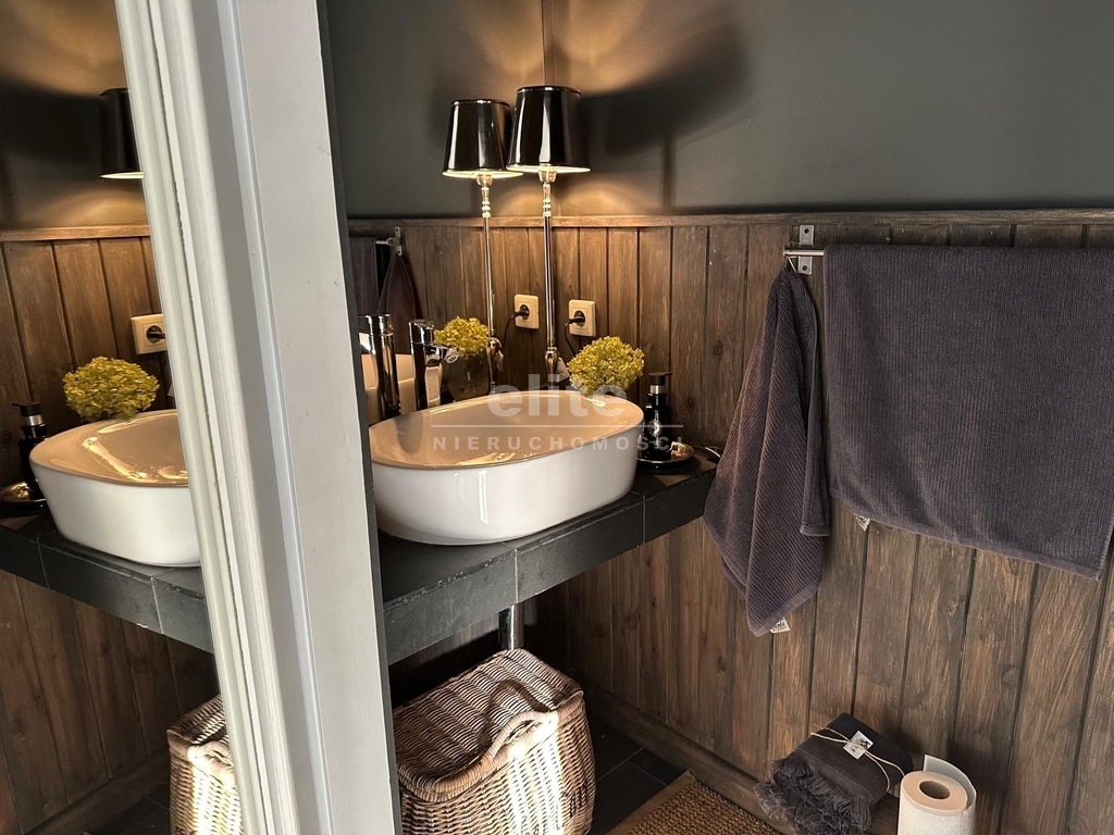Na I piętrze są dwie duże sypialnie, pokój kąpielowy, przestronna garderoba oraz biuro z biblioteką.