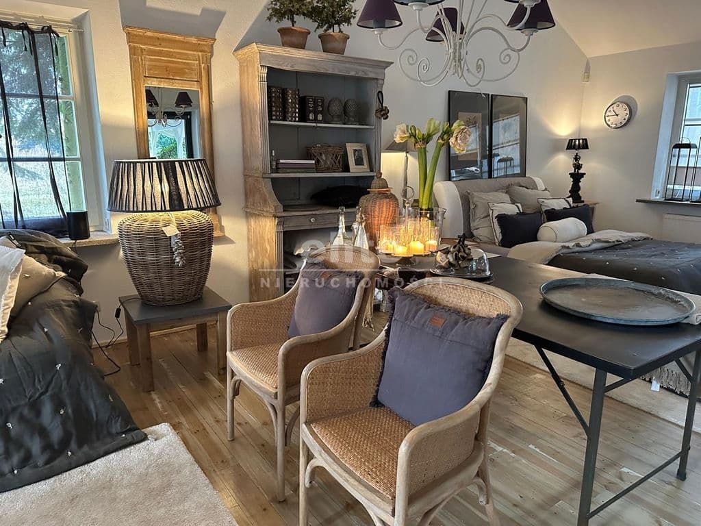 Na wynajem duży, klimatyczny dom z 4 sypialniami (9 pokoi) i 3 łazienkami, w okolicy Jeziora Szmaragdowego, z zaaranżowanym tarasem, ogrodem i garażem na 2 samochody.