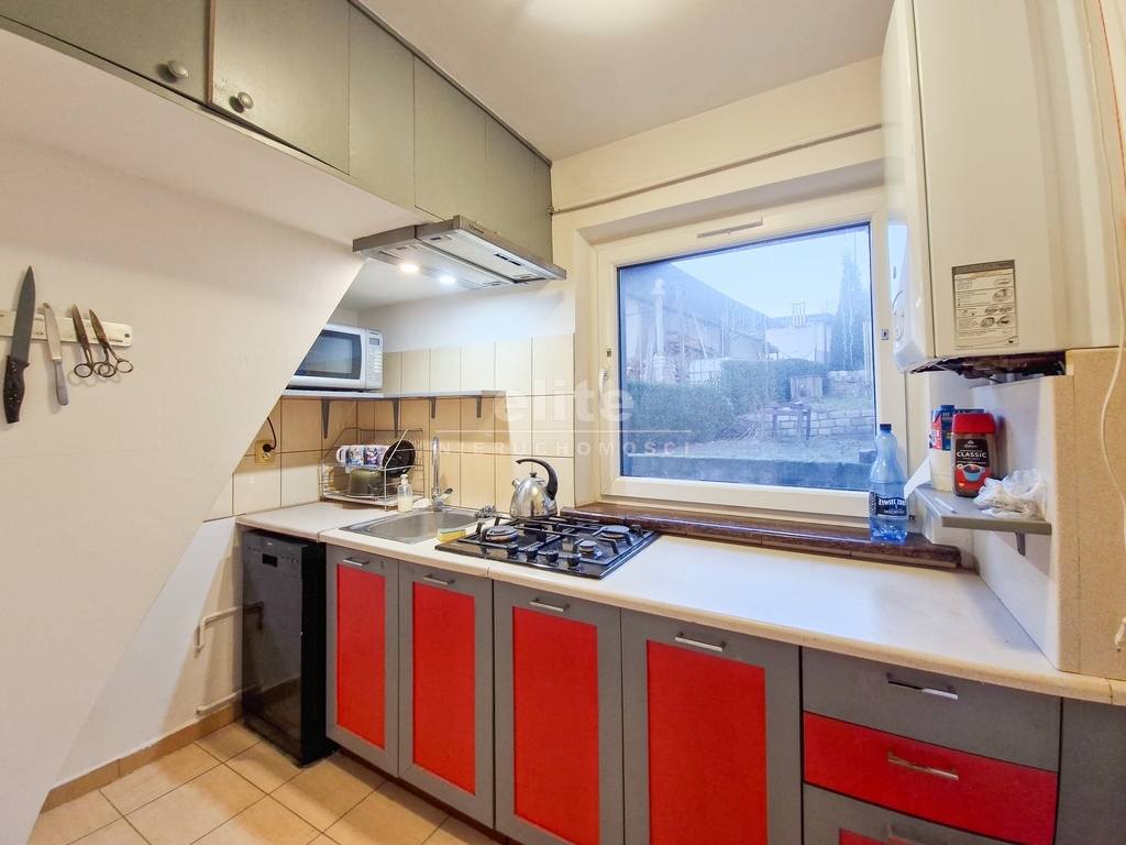 - Parter: salon, gabinet, oddzielna kuchnia, łazienka z prysznicem