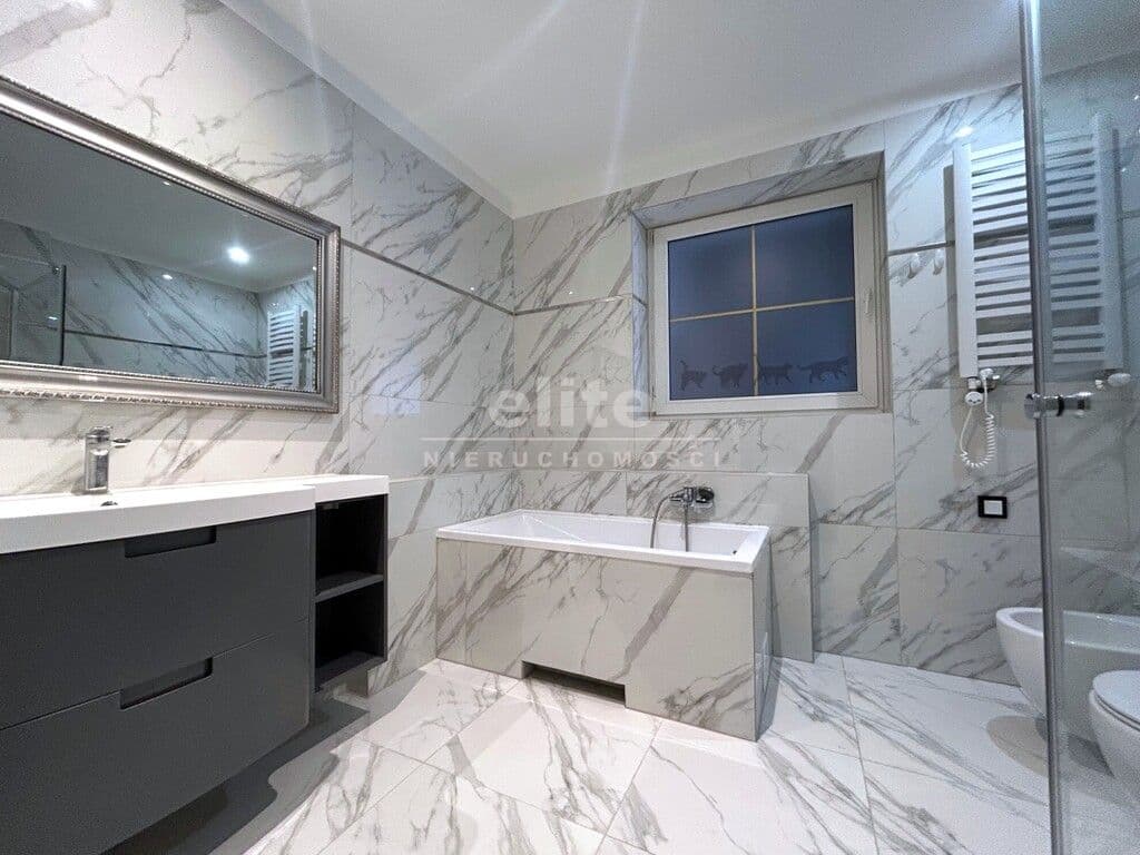 - łazienka (7,4 m2) z wanną kabina prysznicową toaletą; osobne WC