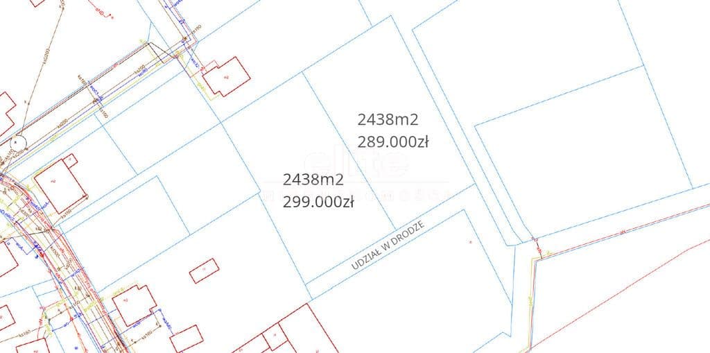 Powierzchnia działki wynosi 2.438m2 i jest w kształcie prostokąta. Dojazd do działki zapewniony jest z dwóch stron - z bliższej poprzez służebność przejazdu i przechodu, a także poprzez udział w działce drogowej - utwardzona droga gruntowa. Media, takie jak prąd, woda, gaz, kanalizacja oraz światłowód - dostępne są w odległości około 75 metrów od działki. Ukształtowanie działki w większości jest płaskie z lekką pochyłością.