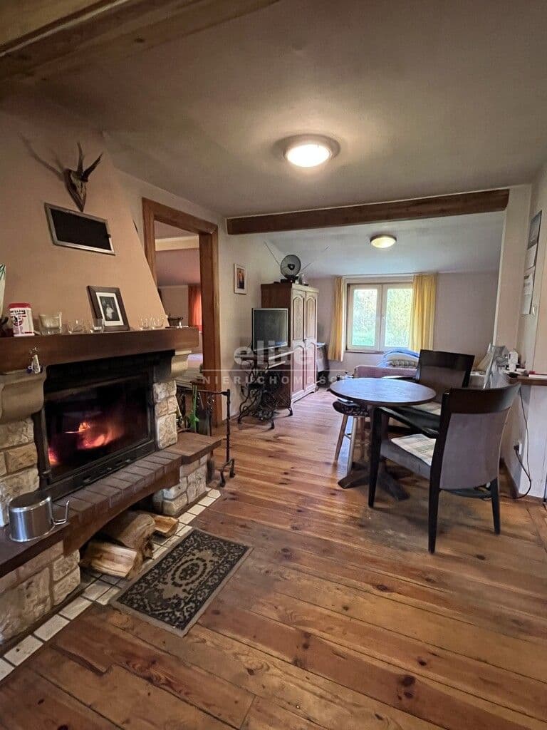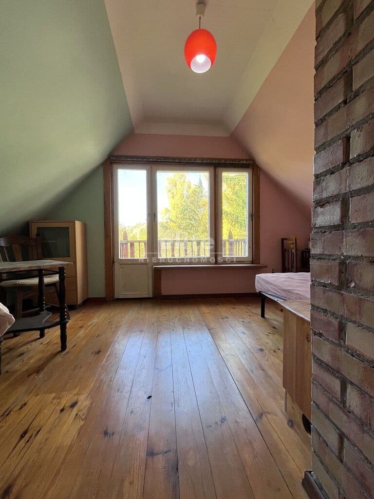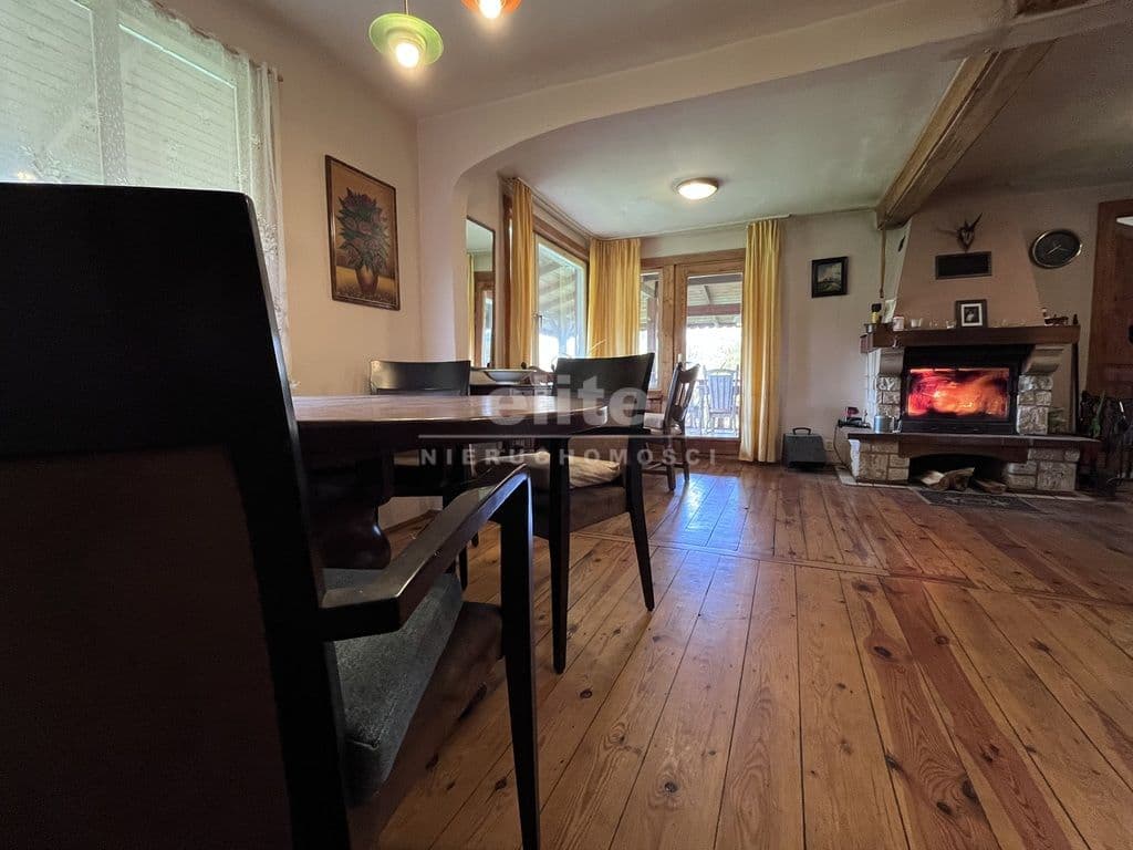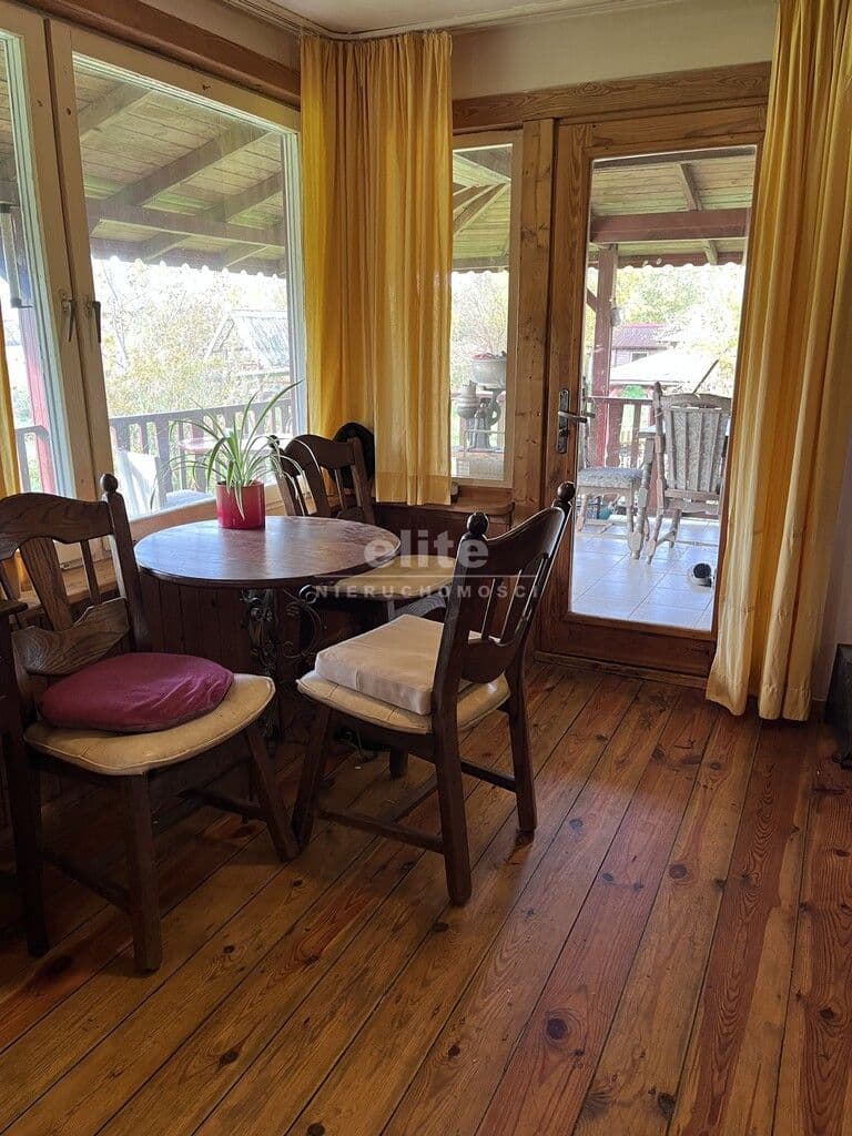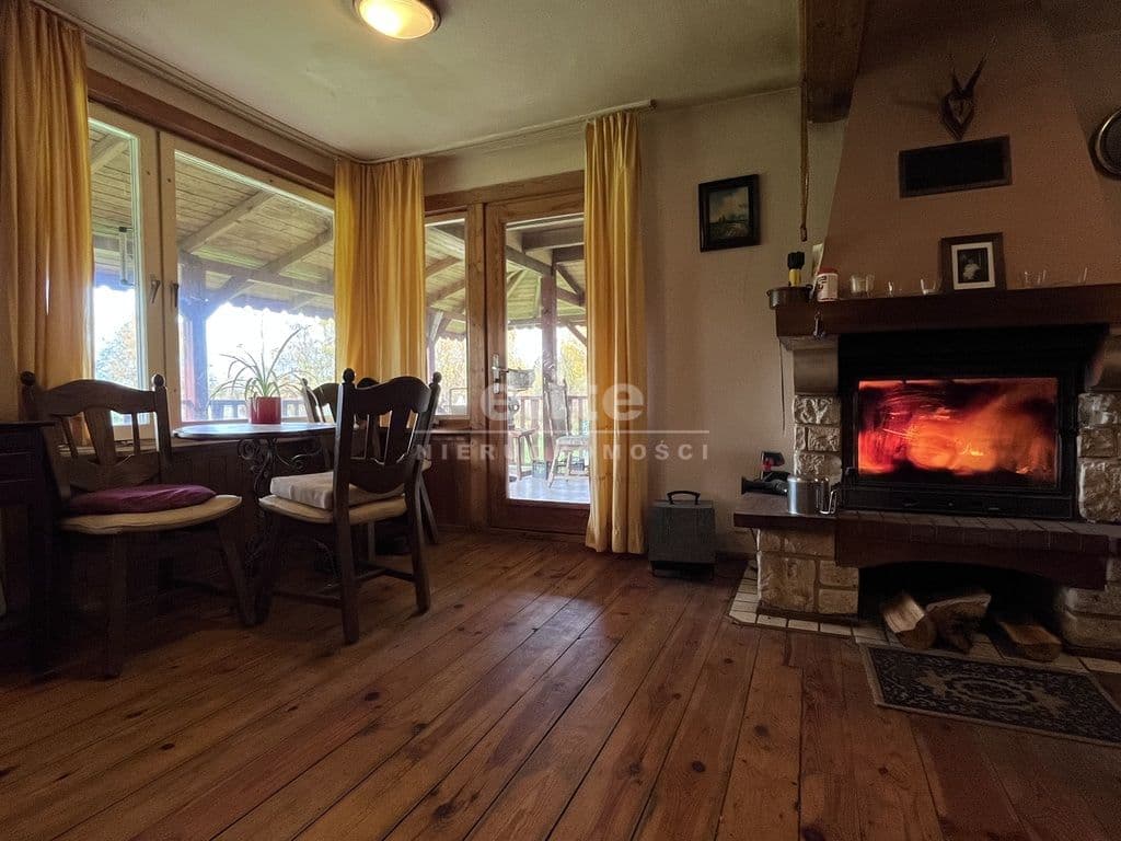 - Drewniany dom całoroczny o dwóch kondygnacjach, w pełni wyposażony i podpiwniczony: