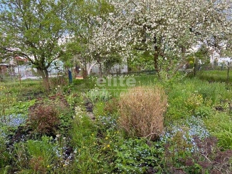 - Działka ogrodzona, zadbana, z licznymi nasadzeniami – m.in. jabłonie, grusza i inne rośliny ozdobne i użytkowe.