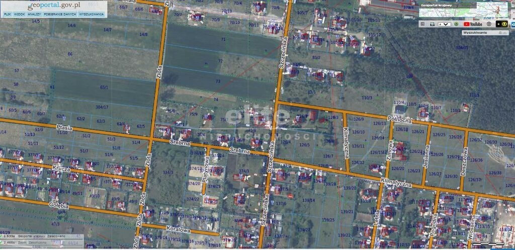 Wymiary działki: szer. ok 44 m, dł. ok 47 m.