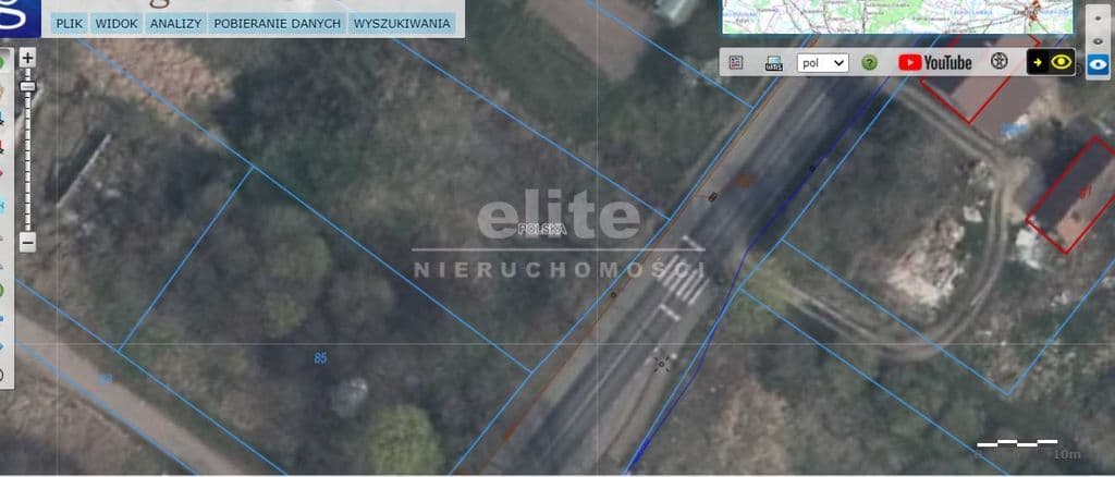 Dojazd do działki drogą asfaltową. W kształcie prostokąta krótszym bokiem skierowany do drogi.