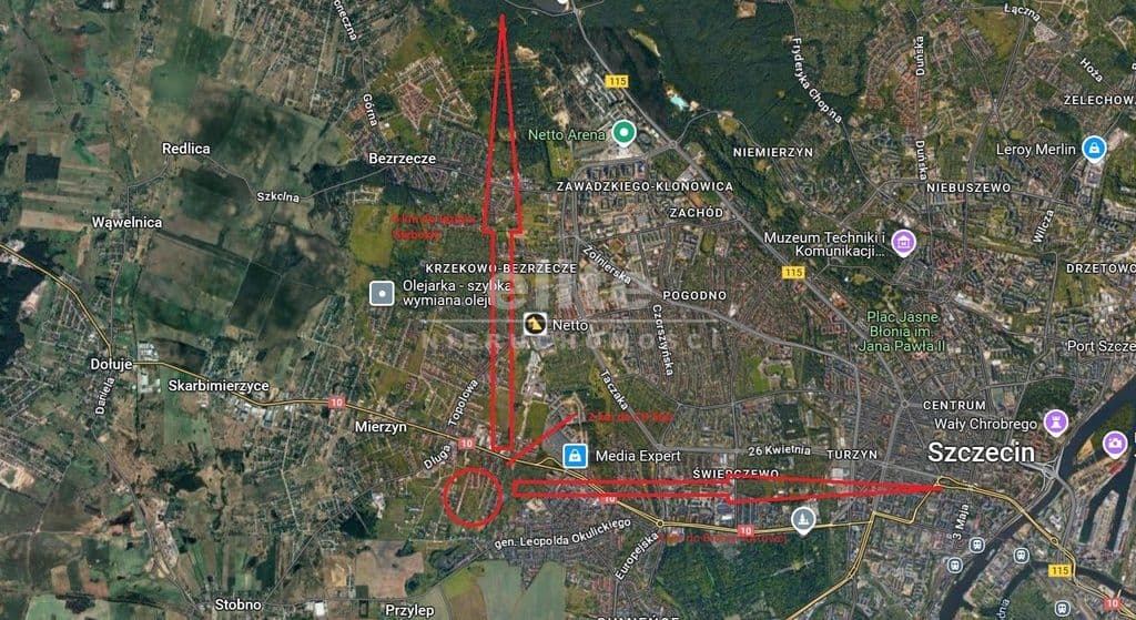 Kompleks 62 działek na sprzedaż znajduje się na granicy Mierzyna oraz Szczecina przy osiedlu Gumieńce, w dzielnicy willowej zabudowanej domami jednorodzinnymi oraz blokami wielorodzinnymi. Na nieruchomość składają się działki przygotowane pod zabudowę mieszkaniową oraz działka drogowa zapewniająca dojazd do wszystkich działek w kompleksie a także dostęp do infrastruktury technicznej. Część działki drogowej została wykonana z podbudowy betonowej pod nawierzchnię asfaltową wraz z sieciami: wodociągową, kanalizacji sanitarnej oraz gazowej i elektrycznej. Działka od strony zachodniej graniczy z terenem niezabudowanym oraz z zabudowanymi działkami domami jednorodzinnymi. Od strony południowej tereny niezabudowane oraz zabudowa jednorodzinna.