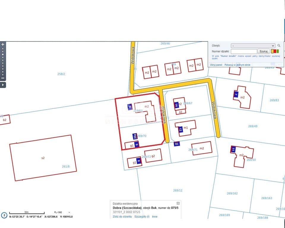 Do sprzedaży działka położona w Mierzynie z wydanymi warunkami zabudowy, oraz pozwoleniem na budowę. Ulica Widokowa, boczna od Długiej. Procentowa powierzchnia zabudowy wynosi 20, wysokość do 9 metrów. Prostokąt o wymiarach 45x37m. Działka w pełni uzbrojona, ponadto internet kablowy w drodze. Wjazd na nieruchomość możliwa z dwóch stron, zarówno od strony północnej jak też wschodniej. Droga dojazdowa prywatna. W bezpośrednim sąsiedztwie wybudowane bliźniaki.
