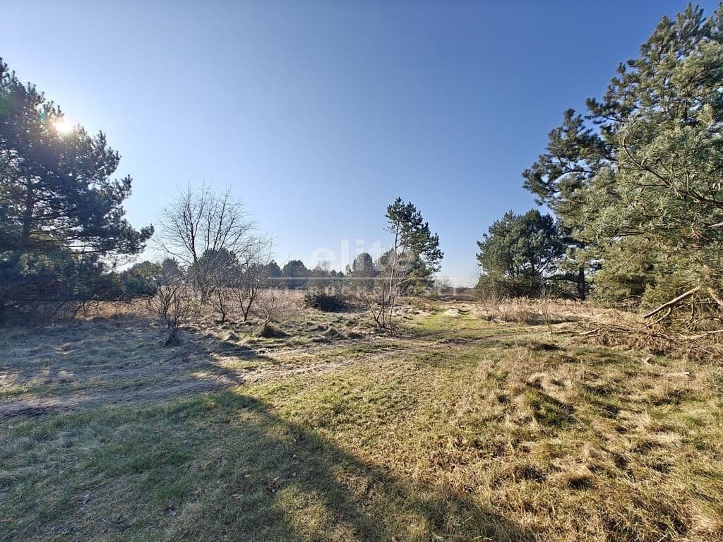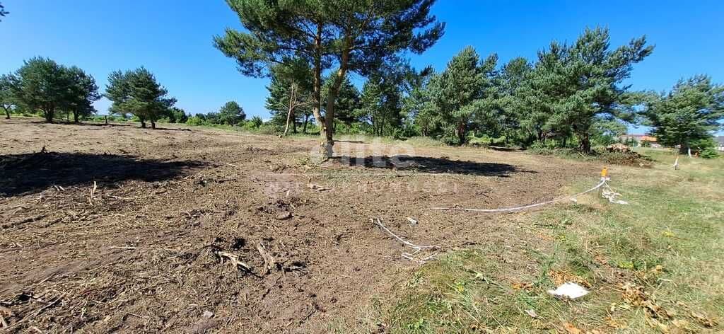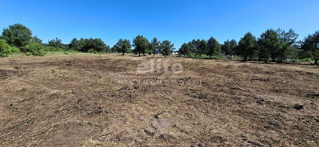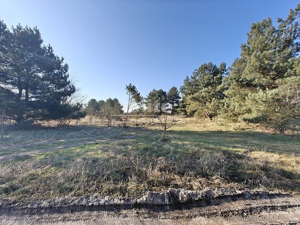 Działka płaska, porośnięta częściowo pięknymi sosnami.