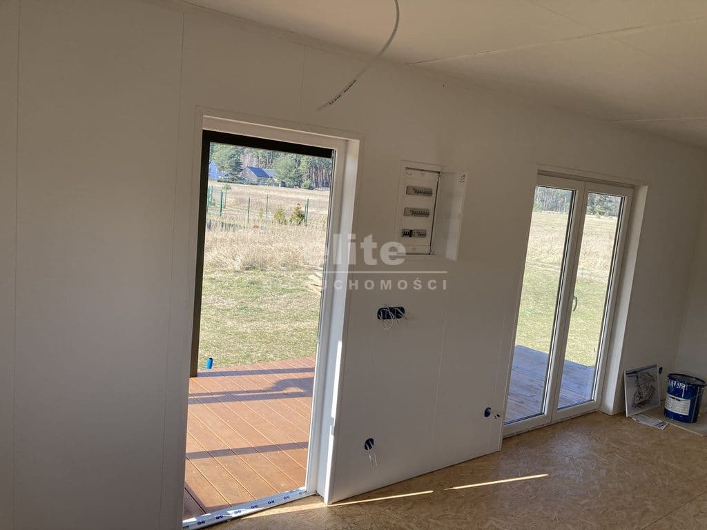 postawionym na niej domem zbudowanym w technologii drewnianej o powierzchni 57 mkw.