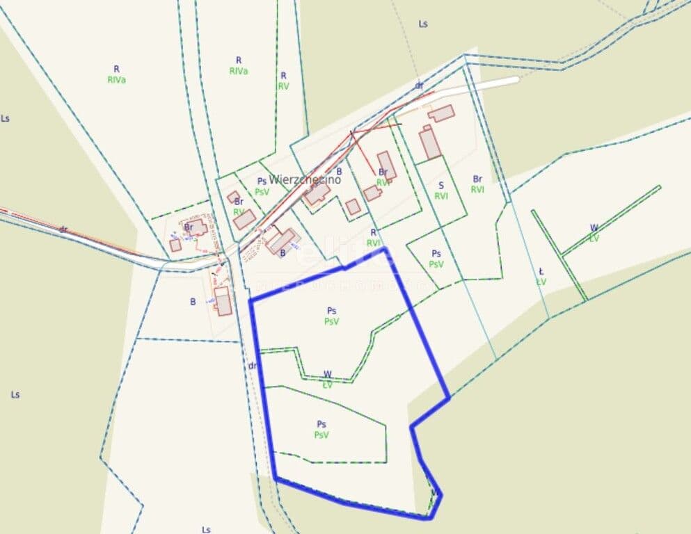 Działka o pow. 2,25 ha położona jest w osadzie Wierzchęcino, w gminie Nowogard, ok. 1 km od drogi wojewódzkiej łączącej Nowogard z Golczewem.