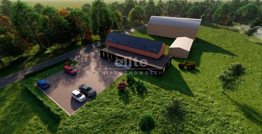 Na działce znajduje się parterowy budynek gospodarczy w bardzo dobrym stanie o powierzchni 300mkw (2 poziomy), który można przekształcić chociażby w budynek noclegowy pod usługi krótkotrwałego zameldowania. Projekt koncepcyjny z 2023 roku jest w cenie działki.