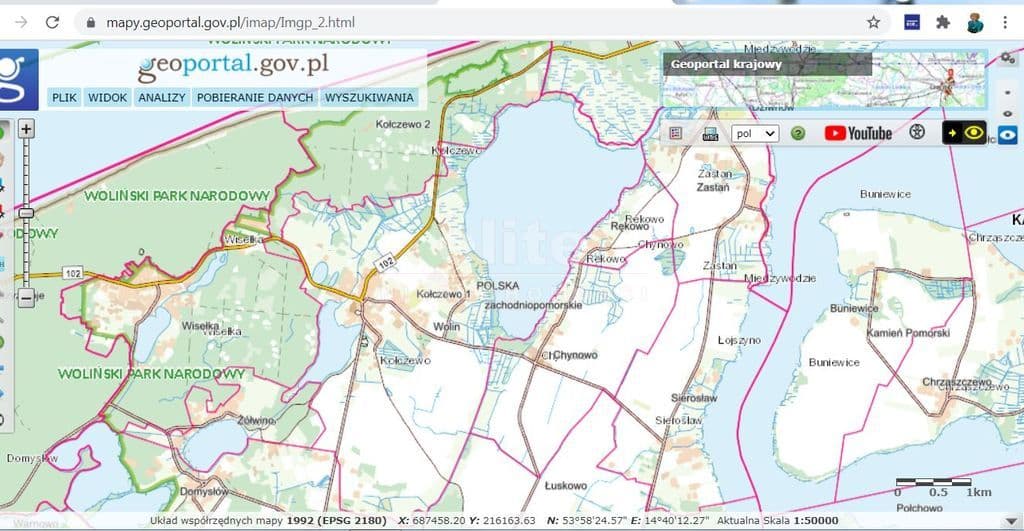 Dla działki brak jest miejscowego planu zagospodarowania przestrzennego. Studium kierunków zagospodarowania gm. Wolin, Uch.XL/418/06 z 21.10.2006, działka leży częściowo na terenie przeznaczonym na cela rolne i częściowo w strefie rozwoju funkcji rekreacyjnej- teren wskazany do opracowania miejscowego planu zagospodarowania terenu.