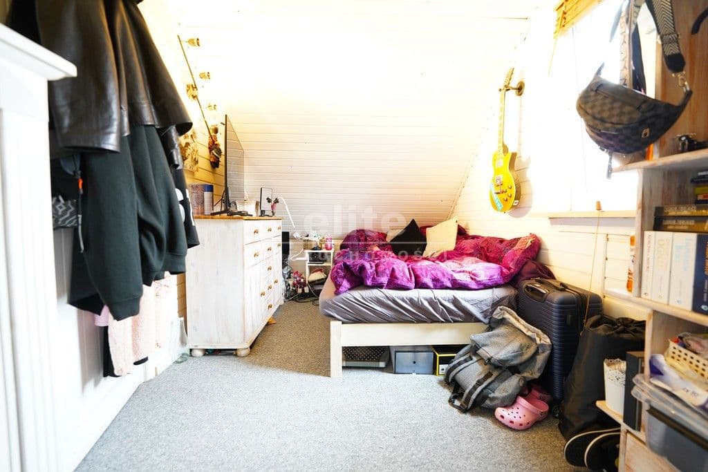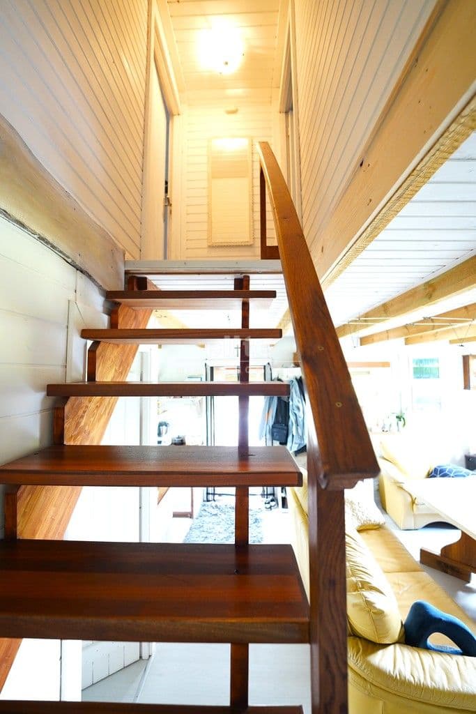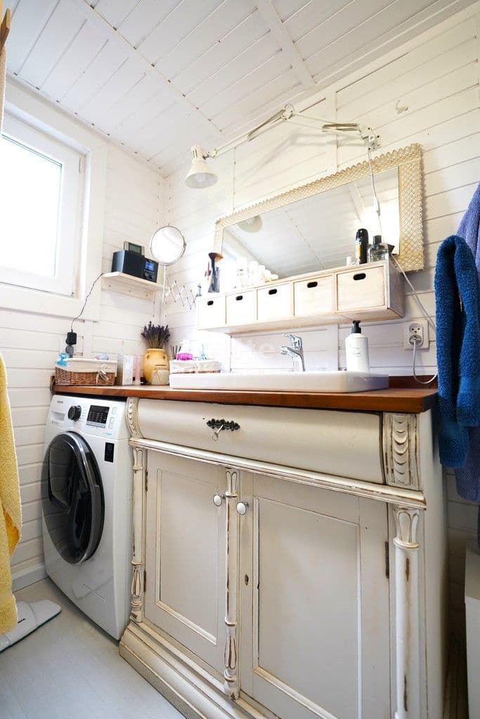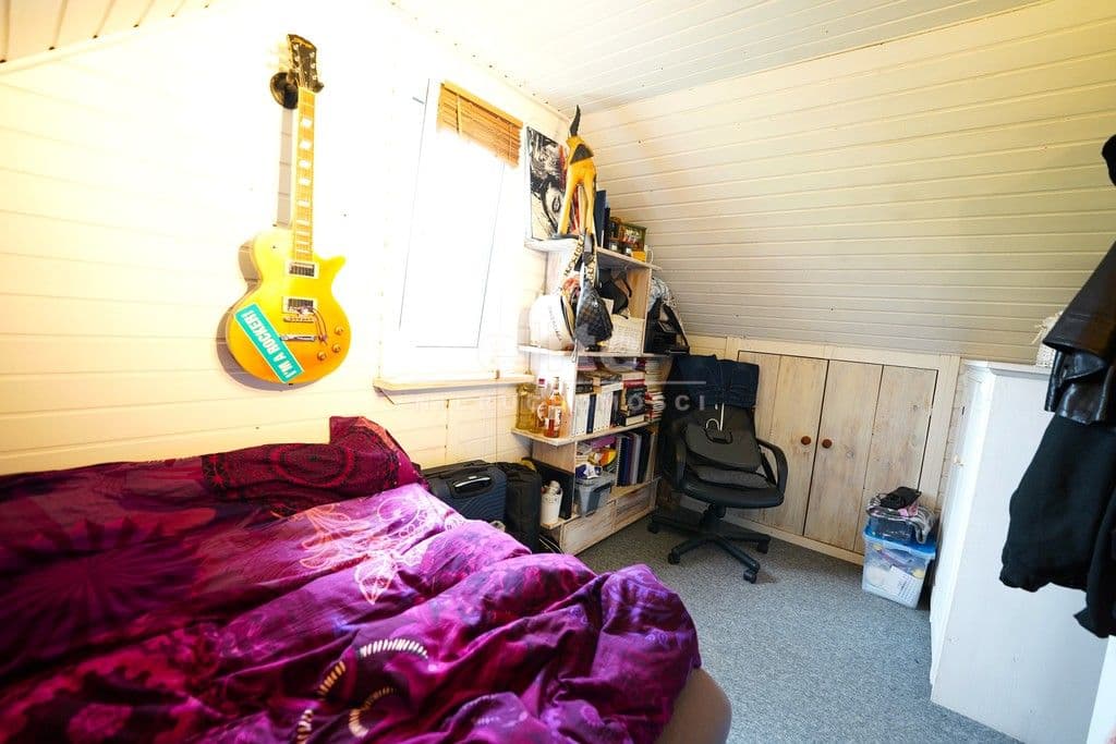 Okna PCV, na podłodze znajdują się panele. Nieruchomość pomalowana w jasnych kolorach z dodatkami drewna. Wszystko to tworzy spójną całość.
