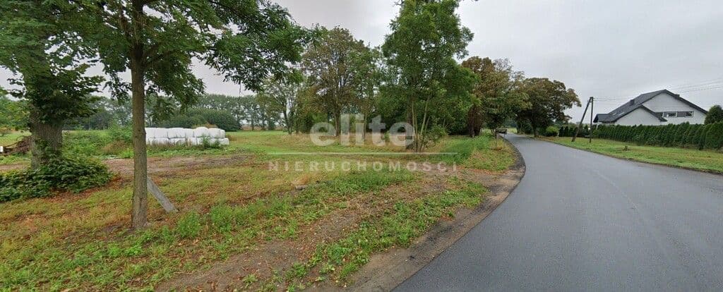 Wygląd: drzewa wzdłuż frontu działki, w głębi trawa i małe drzewka z możliwością wycinki wedle potrzeby