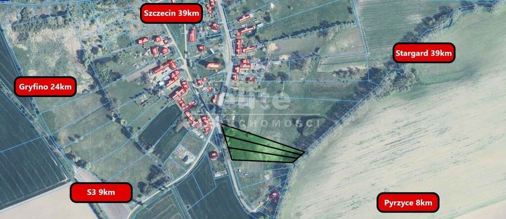 Na sprzedaż działki budowlane w Starym Chrapowie (gmina Bielice, powiat Pyrzycki) zlokalizowane w obszarze zwartej zabudowy przy drodze głównej. Wzdłuż frontu działek rozrzucone są nieliczne drzewa mogące zapewnić przyjemny cień w obrębie przyszłego domostwa.