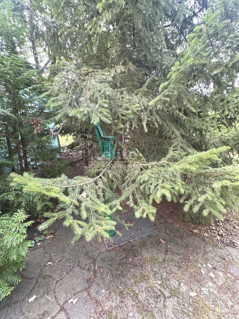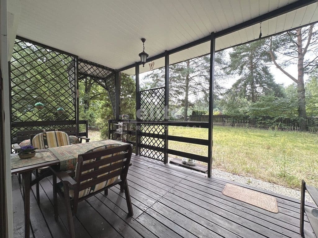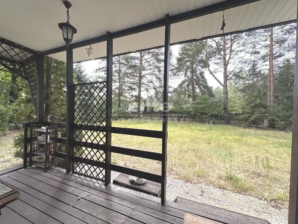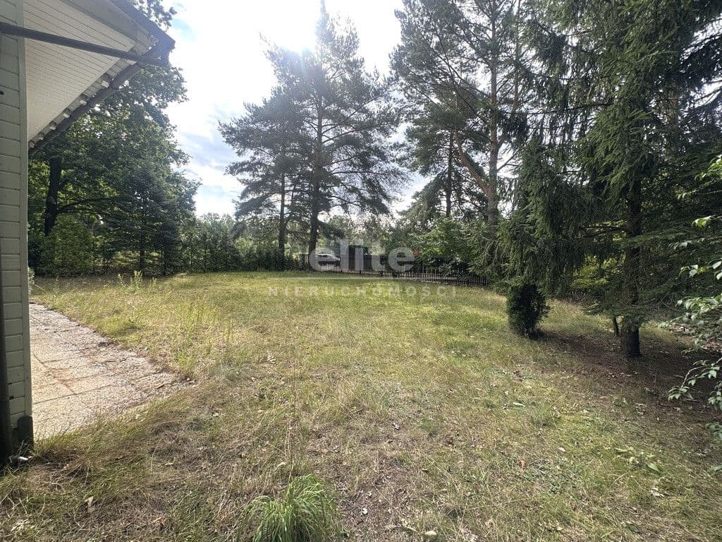 Nieruchomość graniczy z lasem, na działce nasadzenia i sporo wolnej przestrzeni.