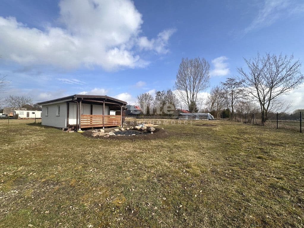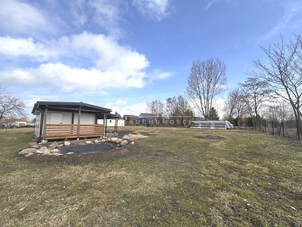 Na terenie nieruchomości znajduje się niewielki domek rekreacyjny o powierzchni 35 m², idealny na weekendowy wypoczynek lub jako baza pod przyszłą zabudowę całoroczną.